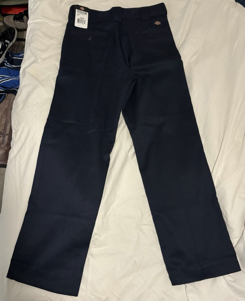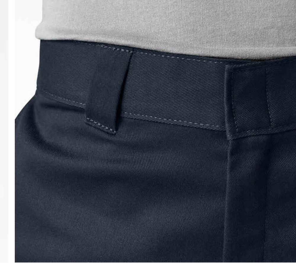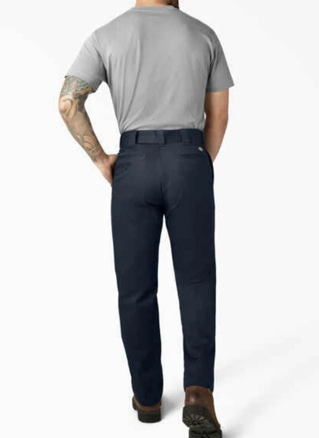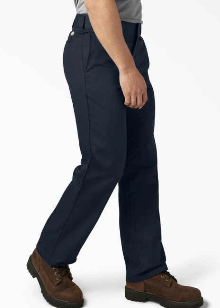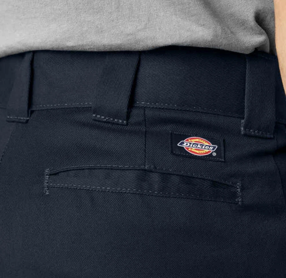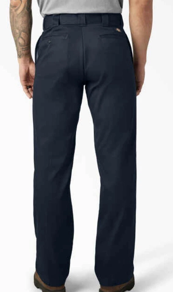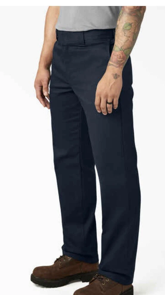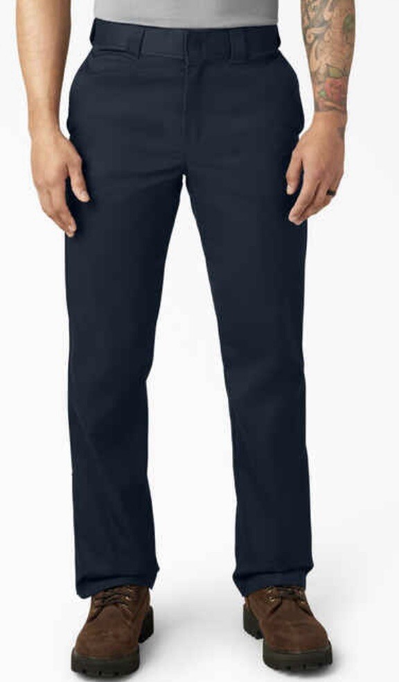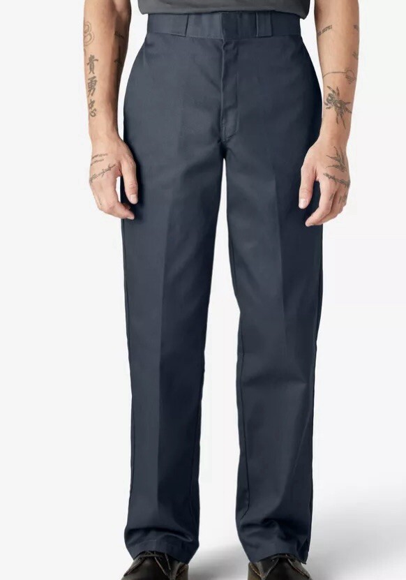 Our men's 874* FLEX Work Pants have stood the test of time, adapting to the demands of any workplace. These men's work pants are designed for all-day comfort and freedom of movement with our FLEX fabric. The pants ensure you can count on a professional appearance with wrinkle resistance and moisture-wicking technology, which is designed to keep you cool and dry throughout your workday. Crafted for durability and comfort, the Dickies 874 Original Fit Work Pants in navy are a staple for those who value both style and functionality. The blend of 65% polyester and 35% cotton ensures a balance of toughness and breathability, making them ideal for a variety of settings. With an inseam of 32 inches and available in size 32/32, these chino-style pants cater to a regular fit, designed to suit the modern man. The pants feature a range of practical elements such as pockets for convenience and an embroidered logo patch that adds a touch of authenticity. Suitable for seasons from fall through to winter, these pants are a versatile addition to any wardrobe. They embody the spirit of American workwear, with a nod to the biker and punk rock cultures of the 90s, making them a perfect choice for those who appreciate a blend of ruggedness and urban flair.