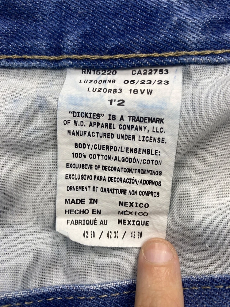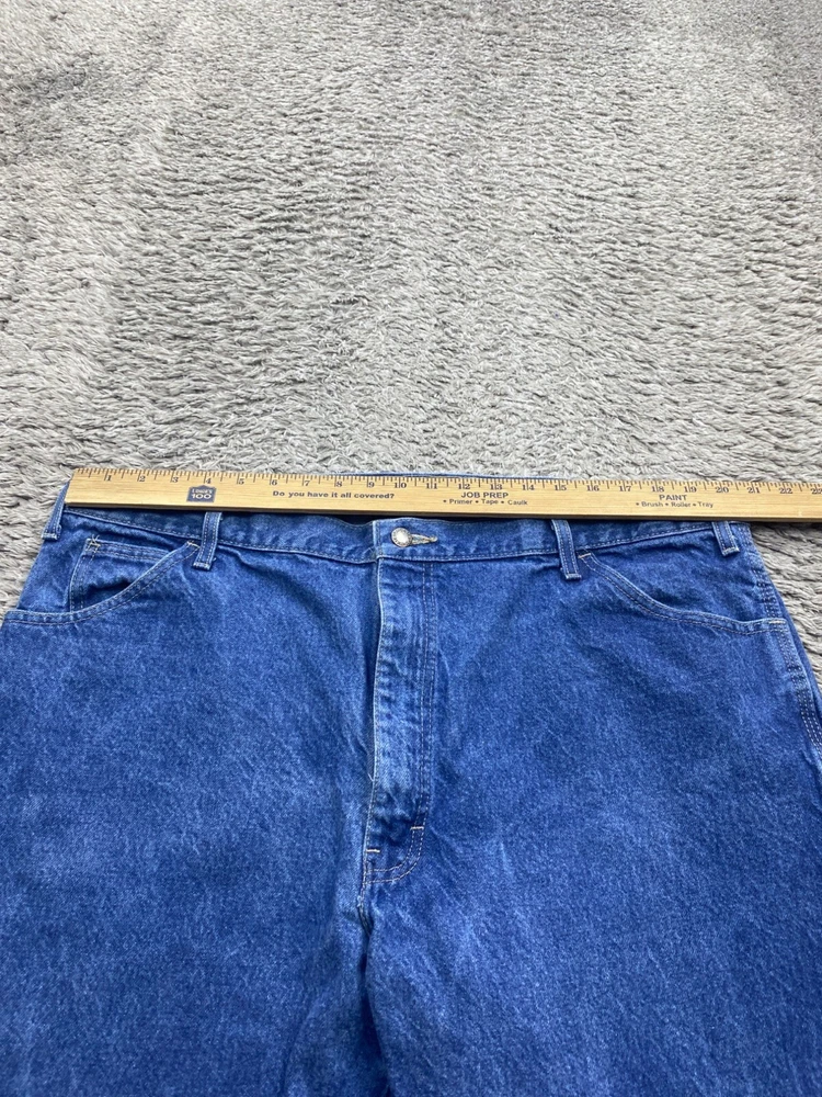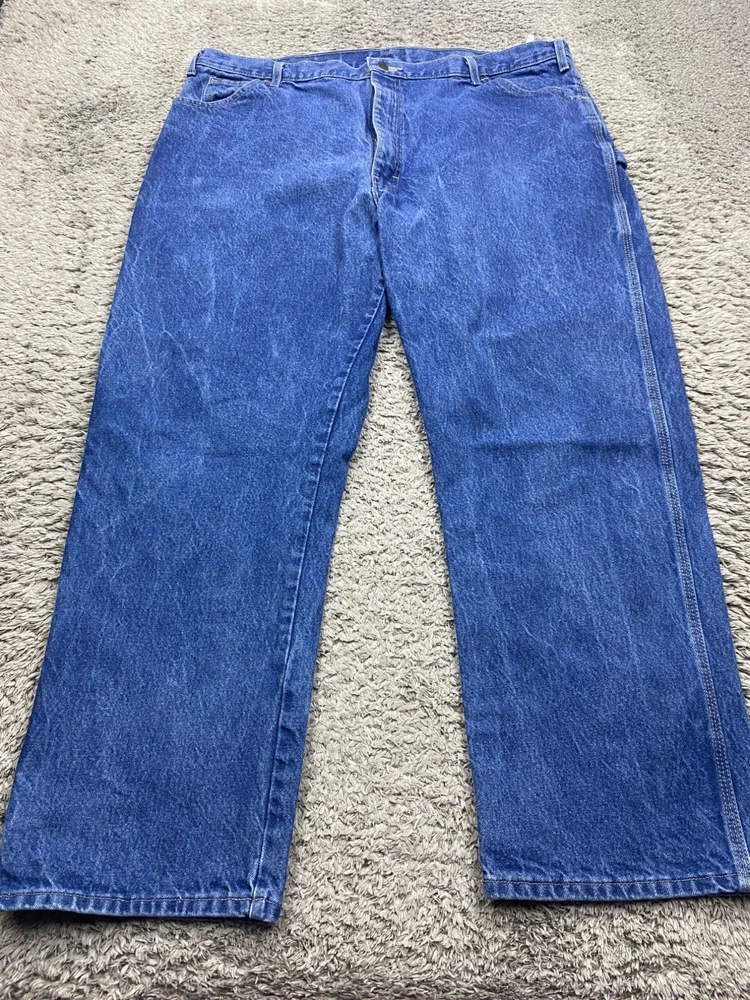 Closure: Button, Zip Style: Wide-Leg Color: Blue Theme: 90s, Cowboy, Festival, Grunge, Hip Hop, USA Material: Cotton Inseam: 30 in Country/Region of Manufacture: Mexico Rise: Mid (10-12 in) Pattern: Solid Size: 42 Size Type: Regular Fabric Type: Denim Fabric Wash: Medium Department: Men Features: Comfort, Easy Care, Pockets Waist Size: 42 in Accents: Button, Logo, Zipper Brand: Dickies Type: Jeans Garment Care: Machine Washable Pocket Type: 5-Pocket Design, Cargo Pocket, Coin Pocket Fit: Relaxed