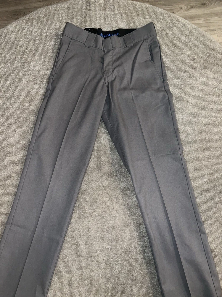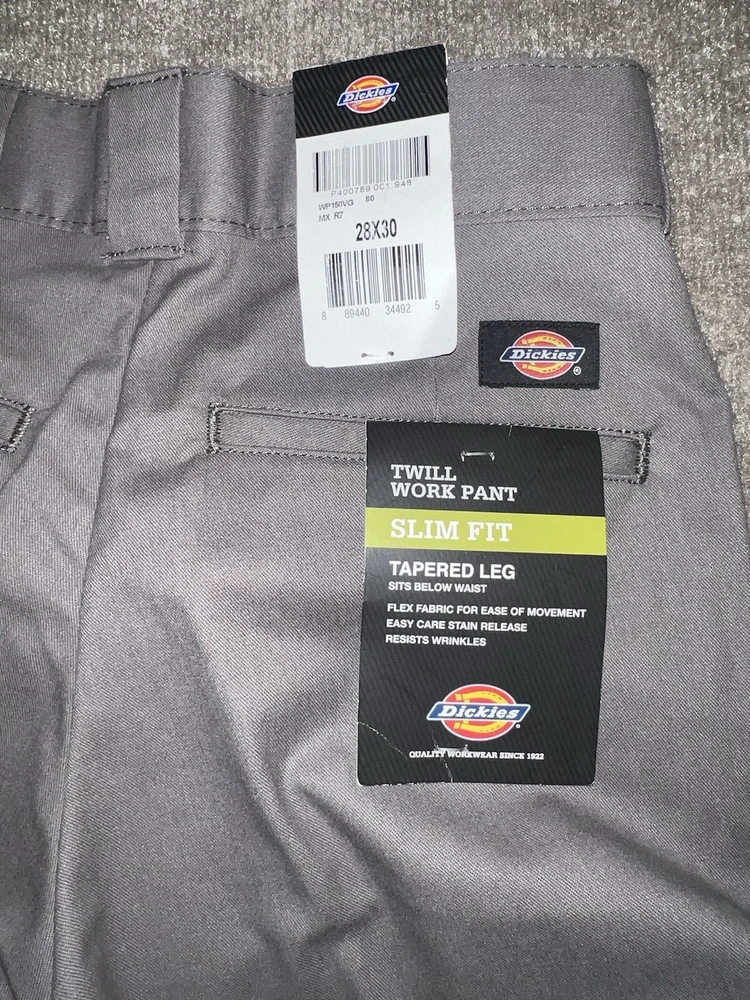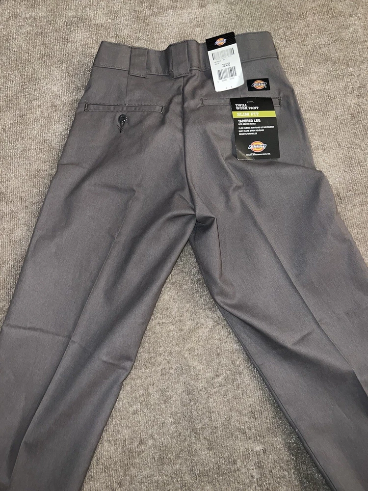 Introducing the Dickies Flex Twill Work Pants in a stylish gray color and slim fit design. These pants are perfect for a variety of occasions including travel, casual wear, workwear, and business attire. The pants feature a zip and button closure, 5-pocket design with slash and coin pockets, and a mid-rise fit. Made with a combination of polyester and cotton materials and a canvas fabric type, these pants are both lightweight and comfortable. The tapered leg design and slimming features provide a modern look while the accents of buttons and zippers add a touch of style. These pants are available in size 28 with a 30 inch inseam and are suitable for all seasons including winter, summer, fall, and spring.