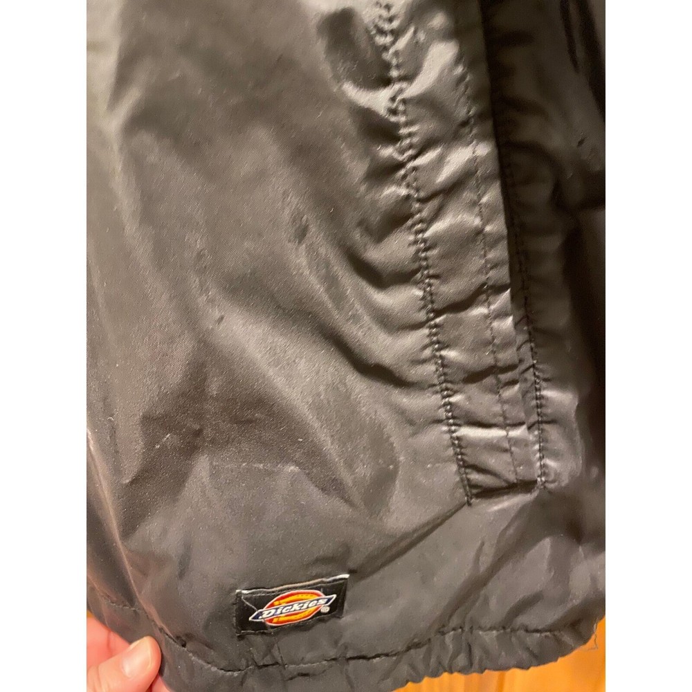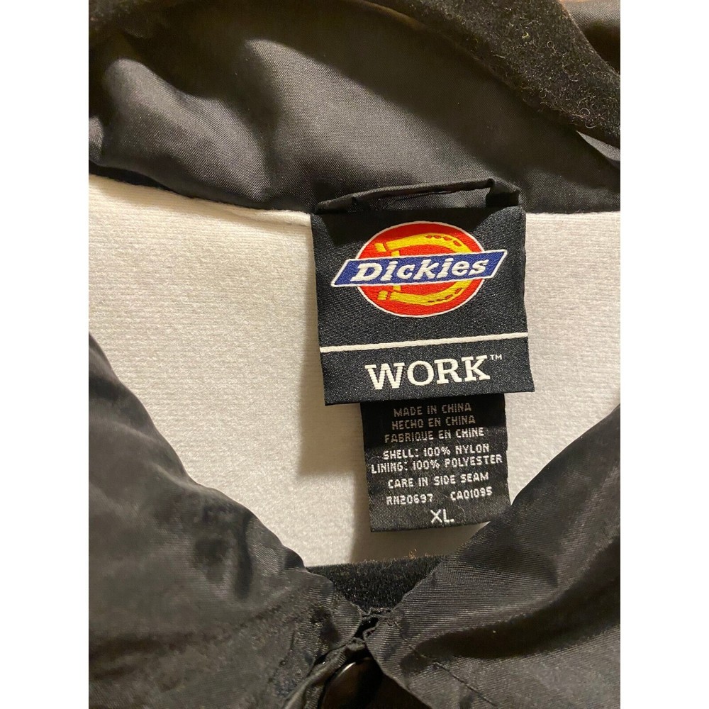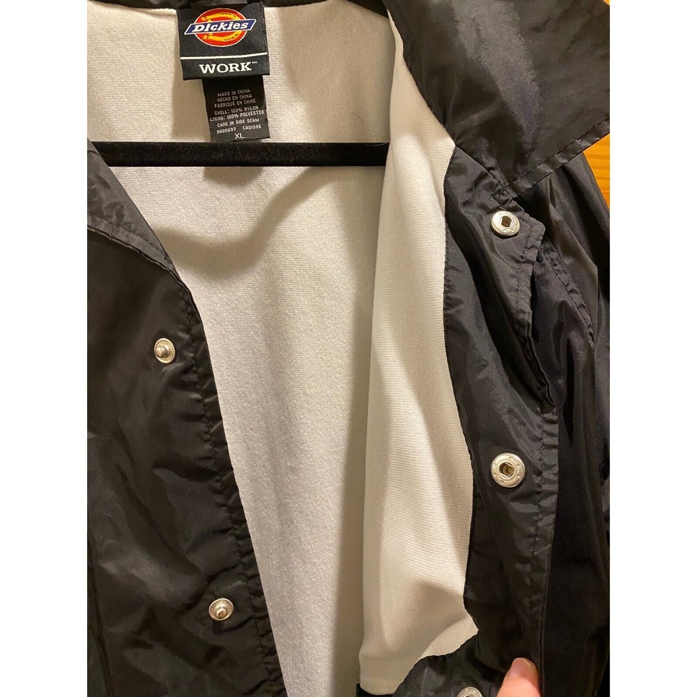 This Dickies Work coaches jacket jacket features a snap-front closure, providing ease of wear and a secure fit. It includes practical pockets. The lightweight construction makes it suitable for layering and comfortable wear in various conditions. A timeless design ensures it remains a staple in any wardrobe. Features: Lightweight, Snap Front, Pockets, All Seasons Type: Jacket Style: Windbreaker Outer Shell Material: Nylon Department: Men Color: Black Lining Material: Polyester Accents: Logo, Snap Pattern: Solid Model: Dickies Coaches Season: Spring, Fall Performance/Activity: Skateboarding, Walking, Workwear Closure: Snap Keywords: Dickies jacket, work jacket, coaches jacket, snap front jacket, lightweight jacket, black jacket, nylon jacket, mens outerwear, streetwear jacket, casual jacket, XL jacket, vintage jacket, Dickies workwear, windbreaker, spring jacket