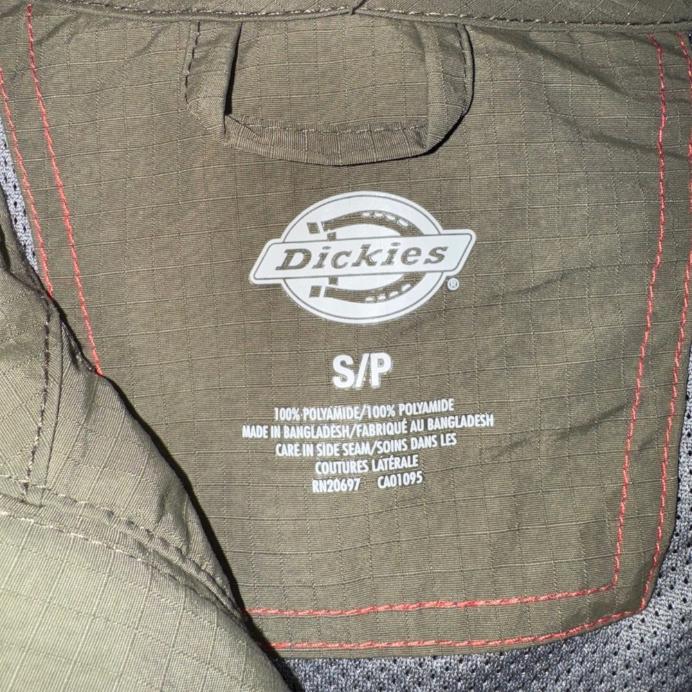*The Original Dickies tags were removed, but the tags from the store of purchase were not. This is brand new and unworn* ================= Discover rugged reliability with this Dickies hooded jacket. The practical design features a full zip front, adjustable hood, and multiple pockets including a chest zip pocket and two lower patch pockets, ensuring you have space for essentials. The durable ripstop fabric offers a unique texture and resilience, while the clean olive green color makes it a versatile layering piece. Perfect for everyday wear or outdoor adventures. Measurements: • Length: 29 in • Sleeve Length: 20 in Type: Jacket Style: Windbreaker Outer Shell Material: Polyamide Department: Unisex Adults Closure: Zip Fabric Type: Occasion: Casual Accents: Zipper, Logo Country of Origin: Bangladesh Features: Lightweight, Full Zip, Removable Hood, Water Resistant Fit: Regular Garment Care: Machine Washable Keywords: Dickies jacket, men's outerwear, hooded jacket, olive green, lightweight, ripstop, utility, casual wear, workwear, outdoor, travel, windbreaker, Rip Stop
