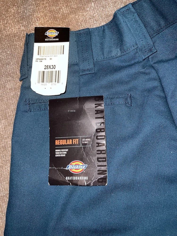 Elevate your skateboarding wardrobe with these Dickies Skateboarding Regular Fit Twill Pants in Airforce Blue. These pants are perfect for travel, workwear, or casual occasions, and feature a flat front, straight leg style with a mid-rise waist. The pants are made of a durable and wrinkle-resistant fabric blend of polyester, cotton, and polyester blend, making them machine washable and perfect for easy care. The pants come with various features such as slash pockets, center crease, and stain-resistant material, making them an ideal choice for the skateboarding enthusiast. The pants are available in size 28x30 and are part of the Dickies Skate product line. Get your hands on these stylish pants today and add them to your skateboarding collection.