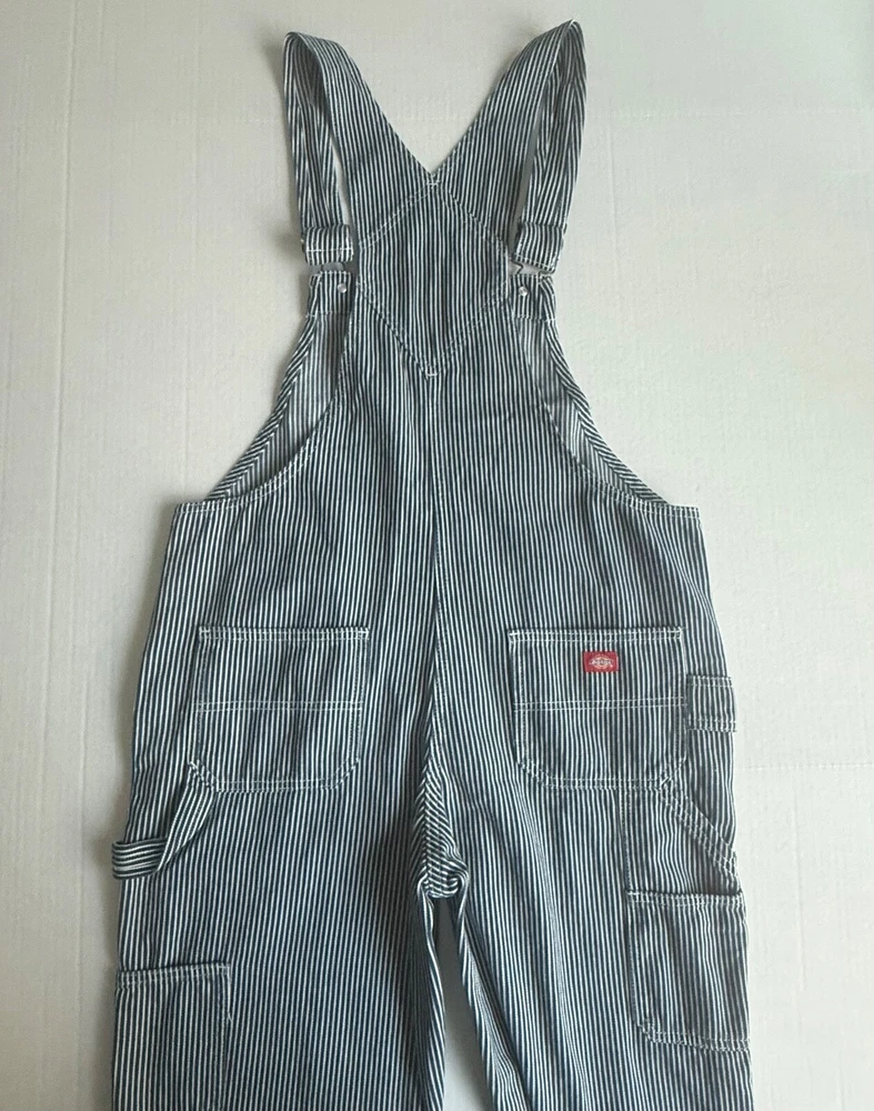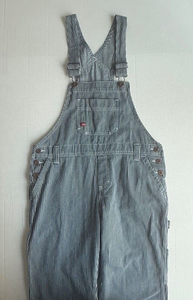 *This is not a new item and does not ship with its original tags. Good condition Size small Front bib Blue white hickory stripe 100% cotton