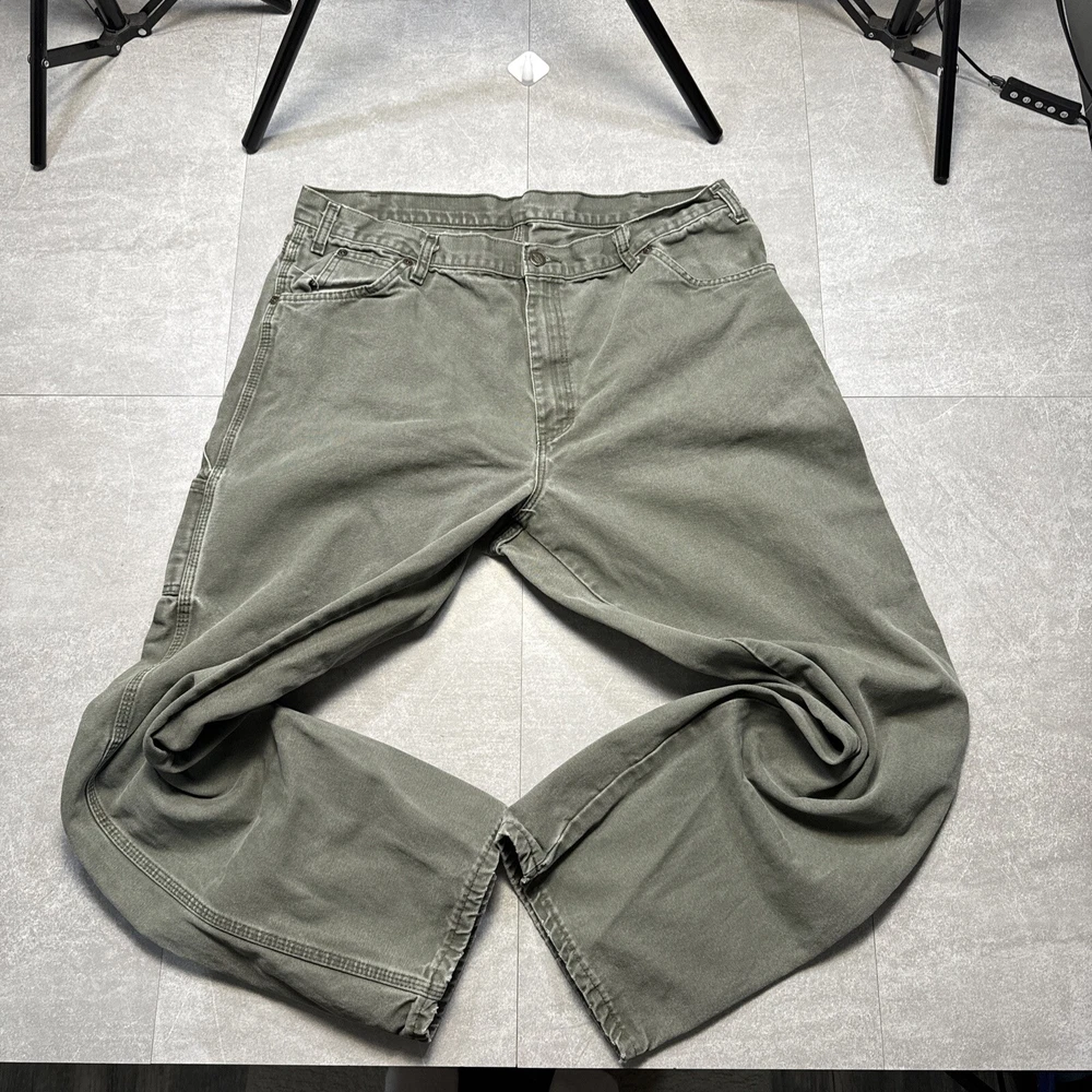 Dickies green carpenter jeans pants 90s workwear size 38 x 32* baggy skate Please check the measurements in the photos in order to gurantee correct fit of the clothing item! the measurements tend to be located at the end of the set of photos! thanks! Our customers are always our first priority here at MJTvintage! if you ever have any concerns please contact us we typically respond very promptly! if there is for any reason your not happy with a purchase don't leave a bad review just contact us and we will be happy to accomodate any issues you had, we believe in going the extra mile for our customers!! lastly, you are always the top priority as the customer and we thank you for your support! Contact us We can be contacted at any time through eBay messages if you have any questions, comments or product requests. We will respond to you within 24 hours and do our best to help you out! We encourage our customers to contact us with any questions or concerns! We'd like to be sure you are completely satisfied with your purchase. Returns For our Buyers Convienience we offer free returns! we do though stringly discourage returns for the item not fitting as we include detailed measurements in our listings so please try to be respectful of that, thanks! Shipping All packages are shipped next day 100% of the time except if purchased on the weekend they go out on monday morning! we pride ourselves on our fast shipping and hold true to it always! Disclaimer most of the items we sell are vintage (20 years & older), therefore some of them might have minor flaws that are caught in the pictures but we try our hardest to describe and picture any flaws! Free eBay listing template designed by © dewiso.com .