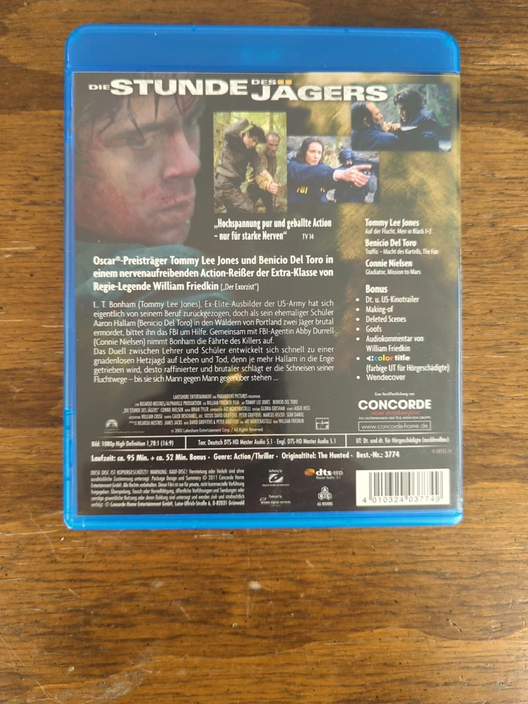 Title: Die Stunde des Jägers Actor: Jenna Subtitle Language: German Rating: FSK 18 Type: Filme Director: William Language: German Format: Blu-ray gtin13: 4010324037749 No Of Discs: 1 UPC: 4010324037749 Run Time: 1 Stunde und 35 Minuten Country/Region of Manufacture: Deutschland Studio: Leonine EAN: 4010324037749 Release Date: 02/03/2011 Movie/TV Title: Die Stunde des Jägers Region Code: Blu-ray: C (China, Russia, India...), Blu-ray: A (Americas, Southeast Asia...), Blu-ray: B (Europe, AU, NZ, Africa...) Release Year: 2011