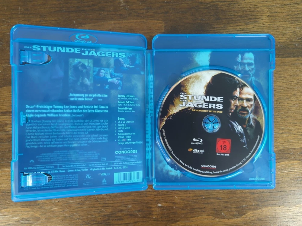 Experience an intense action-thriller with the Blu-ray edition of "Die Stunde des Jägers". This movie is a must-have for fans of Jenna and William's direction, featuring German subtitles and FSK 18 rating. The Region B, A, and C compatible format guarantees compatibility across different locations, enabling you to enjoy the movie anywhere in the world. The disc is in excellent working condition, ensuring optimal playability. This Blu-ray version of "Die Stunde des Jägers" is a valuable addition to any movie collection. Get your hands on this movie and enjoy the thrilling story of a hunter hunted by the very prey he used to chase.