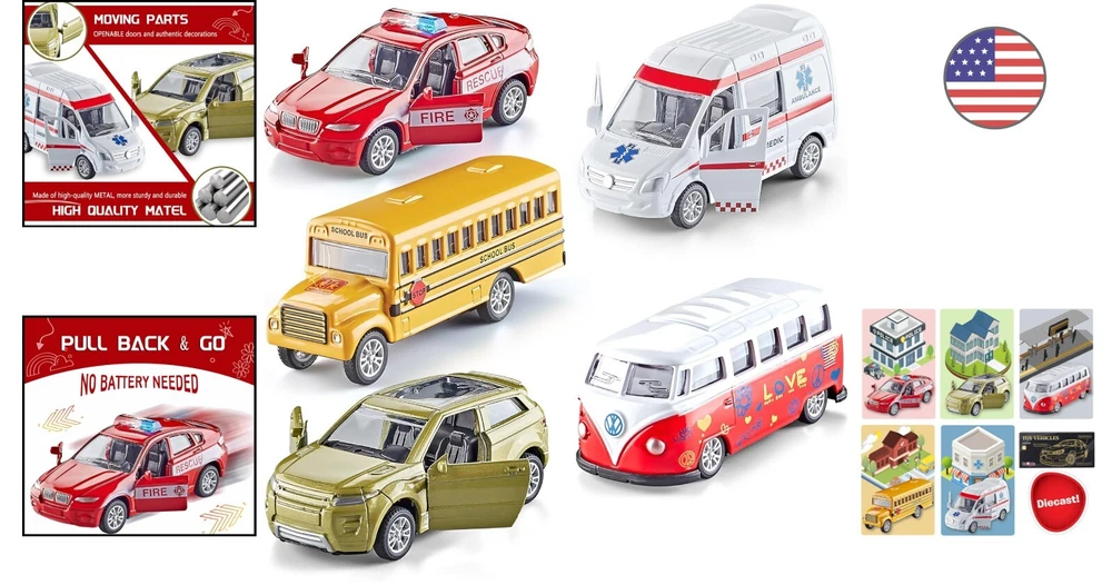 Die-Cast Metal Toy Cars - Set of 5 with Openable Doors - Friction Powered ‹ › ‹ › ‹ › ‹ › ‹ › ‹ › ‹ › ‹ › ‹ › ‹ › ‹ › Die-Cast Metal Toy Cars - Set of 5 with Openable Doors - Friction Powered -Set of 5 die cast vehicles, about 1:64 scale -Made of high quality METAL and plastic materials -Friction powered design for easy pull back and release -Openable doors and authentic decorations -Multiple types and vibrant colors -Choose , More Safety Features: Set of 5 die cast vehicles About 1:64 scale Made of high quality METAL and plastic materials Friction powered design for easy pull back and release Openable doors and authentic decorations Multiple types and vibrant colors Superior toys and professional service Benefits: Sturdy and durable construction Realistic details and authentic looking Easy to play with - just pull back and release Openable doors for added fun and interaction Includes a variety of vehicles for imaginative play Safe and reliable brand Why choose our Die-Cast Metal Toy Cars? Looking for high-quality toy cars that are built to last? Our Die-Cast Metal Toy Cars are made of durable metal and plastic materials, ensuring they can withstand hours of play. With their friction powered design, they're easy to pull back and release for endless fun. Plus, the openable doors and authentic decorations add a realistic touch to each vehicle. Choose for superior toys and professional service, and give your child the best playtime experience. Don't miss out on this amazing set of toy cars - order yours today! Shipping Free & Fast Shipping - We offer free shipping to most of the USA with a normal delivery time of 3-7 days. However, due to the current situation, additional delivery time (up to 3 weeks) may be required for some items. Alternative Carriers - We may use alternative carriers (e.g. USPS, FedEx, UPS, etc.) to ensure your package arrives safely and on time. Due to the use of multiple carriers, we are unable to provide a tracking number automatically. Handling Time - Orders are processed and shipped within 1-2 business days of receiving cleared payment. Shipping Restrictions - Shipping to Alaska, Hawaii, Puerto Rico, Guam, and other US territories may incur shipping charges or delivery restrictions. Please contact us before ordering, or your order can be refunded/cancelled. State Restrictions - There may be restrictions based on your state of purchase. For example, certain items may not be shipped to California due to state regulations. Contact for Tracking Updates - If you require tracking updates or have any concerns about the delivery of your order, please feel free to contact us, and we will be happy to assist you. Return 30-Day Hassle-Free Returns - We want you to be completely satisfied with your purchase. If you are not, you can return the item within 30 days of receiving it for a full refund or exchange. Easy Return Process - To start a return, simply contact us and we will provide you with a prepaid return shipping label and detailed instructions. Restocking Fee - There are no restocking fees for returns. However, the buyer is responsible for return shipping costs if the return is not due to a seller's error. Refund Processing Time - Refunds will be processed within 5 business days of receiving the returned item in its original condition. Payment We accept all major credit cards, PayPal, and Apple Pay for your convenience. Your payment information is secure and encrypted to ensure a safe and seamless transaction. Please complete your payment within 3 days of purchase to avoid any delays in shipping. Feedback Your feedback is extremely important to us. We strive to provide the best products and customer service possible. If you are satisfied with your purchase, please take a moment to leave us a positive review. If you have any concerns or issues with your order, please contact us before leaving negative feedback. We are committed to resolving any problems and ensuring your satisfaction. Contact Us If you have any questions or concerns, please feel free to reach out to our customer support team. You can contact us through the eBay messaging system. We are available Monday to Friday, 9:00 am to 5:00 pm EST, and we will do our best to respond to your inquiry within 24 hours. Thank you for supporting our small family business!