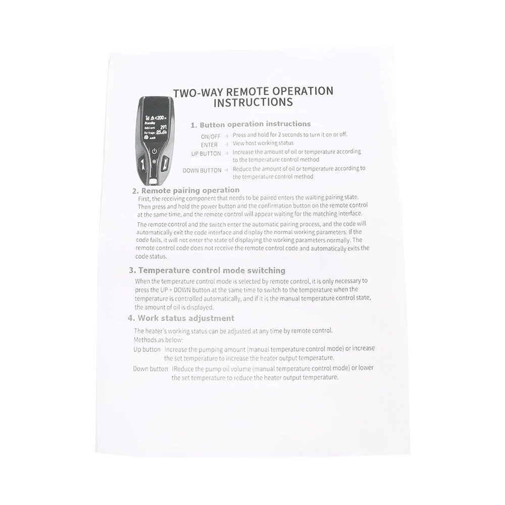 Description: 100% Brand new and high quality Heater Power: 8KW; Fuel Type: Diesel; Rated Voltage: 12V Car Air Conditioning Type: Heating Adjustable Temp. Range: 46℉-95℉/8℃-35℃ Complete Combustion Rate: 100% Tank Capacity: 5L/1.3 gal; Remote Control Distance: 98 ft/30 m Fuel Consumption(L/h): 0.12-0.24 (L/H)/ 0.026-0.063 (Gal/H) Working Temperature: -104℉~+122℉/-40°C~+50°C Heater Dimension(L x W x H): 15.4 x 6 x 16.3 in/39 x 15.3 x 41.5 cm Exhaust Pipe Size(L x W): 59 x 2.5 cm/23.2 x 0.98 in Outlet Pipe Size (L x W): 70 x 7.6 cm/27.6 x 2.99 in Inlet Pipe Size (L x W): 50 x 2.5 cm/19.7 x 0.98 in Accfuns-us Diesel Air Heater 8KW 12V All In One LCD Thermostat For Boat Motorhome Truck Description: 100% Brand new and high quality Heater Power: 8KW; Fuel Type: Diesel; Rated Voltage: 12V Car Air Conditioning Type: Heating Adjustable Temp. Range: 46℉-95℉/8℃-35℃ Complete Combustion Rate: 100% Tank Capacity: 5L/1.3 gal; Remote Control Distance: 98 ft/30 m Fuel Consumption(L/h): 0.12-0.24 (L/H)/ 0.026-0.063 (Gal/H) Working Temperature: -104℉~+122℉/-40°C~+50°C Heater Dimension(L x W x H): 15.4 x 6 x 16.3 in/39 x 15.3 x 41.5 cm Exhaust Pipe Size(L x W): 59 x 2.5 cm/23.2 x 0.98 in Outlet Pipe Size (L x W): 70 x 7.6 cm/27.6 x 2.99 in Inlet Pipe Size (L x W): 50 x 2.5 cm/19.7 x 0.98 in Don't let cold winters stop you from traveling, camping in four seasons, and staying warm. Our Diesel Air Heater is ready to fire past your expectations and heat up quick, and it maintains a low noise during operation. The low fuel and power consumption make it suitable for longer operation time. You can install this parking heater 12V diesel anywhere in your vehicle and easily operate it via remote control. Simple operation, efficient heating! Feature: 【All-in-one Diesel Air Heater】 Heater power: 8 KW; Fuel type: Diesel; Rated voltage: 12V. Working temperature of heater:-104℉~+122℉/-40°C~+50°C. Working temperature of oil pump: -104℉~+104℉/-40°C~+40°C. Don't let cold winters leave you frozen and stop you from traveling, or camping in all four seasons. Get ready to stay warm with our diesel air heater. 【Feel Warmer in No Time】 Feel warmth with every breath! The inhaled cool air is heated and becomes hotter via the aluminum combustion chamber. The diesel heater heats fast and increases the temperature of the car within 10 minutes; it can also pre-heat the engine and clear the window's frost in no time! Make your winter adventures hassle-free. 【Low Energy Consumption】 Fuel consumption: 0.1-0.24 (L/H)/ 0.026-0.063 (Gal/H). The diesel heater features a fuel pump that precisely controls the fuel inlet for 100% combustion. The efficient air heater takes around one gallon for one night to keep cozy during cold weather. The fuel pump vibration is low, effectively reducing the noise and letting you enjoy a quiet and warm space. 【Button Switch & Remote Control】 Our diesel parking heater is equipped with a button switch for temperature control. This button is straightforward to use for anyone. And the muffler is a great way to reduce noise and give you a quiet space. 【Diesel Vehicles & Indoor Use】 As a warming companion for any diesel vehicle, the bunk heater is used widely to heat the interior of cars, RVs, caravans, trucks, ships, etc. Thanks to its compact and portable design, it is also an excellent choice while at home or shopping. Application: As a warming companion for any diesel vehicle, the bunk heater is widely used to heat the cabs of cars, RVs, caravans, trucks, ships, etc. This heating device blows out warm air independently without causing wear and tear or carbon deposits in the engine, thus prolonging engine life by 30%. With the compact and portable design, it is also an excellent choice for home and shop. Package Include: 1 x All-in-one Diesel Heater 1 x Remote Control 1 x Silencer 1 x Air Filter 1 x Vent 1 x Air Outlet pipe 1 x Exhaust Pipe 1 x Air intake Pipe 1 x Wiring Harness 1 x Set of installation Parts 1 x English Manual Item Specifics Warranty 1 Year Brand munirater Manufacturer Part Number Does Not Apply Part Type Diesel Air Heater Complete Combustion Rate 100% Working Temperature -104℉~ Material Metal & Plastic Model WF 5001 Switch Button Tank Capacity 5L/1.3 gal Heater Power 8KW Rated Voltage 12V Fuel Gasoline Diesel Color Black Universal Fitment Yes Fuel Consumption(L/h) 0.12-0.24 (L/H) / 0.026-0.063 (Gal/H) Size 15.4 x 6 x 16.3 in/39 x 15.3 x 41.5 cm Car air conditioning type Heating Payment We accept multiple payment methods. Shipping Notice: The Guaranteed Date is automatically generated and displayed by ebay. We can't change it and can't control the speed of delivery, it's depend on the carrier. We will ship your item out asap after the payment is clear. Usually your Items will be shipped within 1-3 business day after your payment is cleared. International orders may take 10 to 30 business days to arrive. We have CA, NJ warehouses and ship items may vary according to the stock. Returns 30 Days easy returns satisfaction grantee. Items to be returned must be in original factory condition. Contact Us Before leaving us neutral or negative feedback, please contact us first. We will do everything we can to give you a satisfying solution. Please don't open case via eBay or PayPal. We do our best to resolve any issue. Leaving negative feedback and low ratings doesn't get things solved. So please talk with us and we will not let you down. FeedBack We strive for 100% customer satisfaction! FEEDBACK IS VERY IMPORTANT TO US. We request that you contact us immediately BEFORE you give us neutral or negative feedback, so that we can satisfactorily address your concerns. Accfuns-us DESCRIPTION PAYMENT SHIPPING RETURN POLICY CONTACT US Shop Category Store Home Lighting & Lamps ◈ Fog Lights ◈ Xenon Headlight Ballast ◈ Headlight Bulb ◈ Fog Lamps cover ◈ Turn Lights ◈ Moto Lighting & Lamps ◈ LED Lamp Decoder ◈ Light Interior Package ◈ Headligh