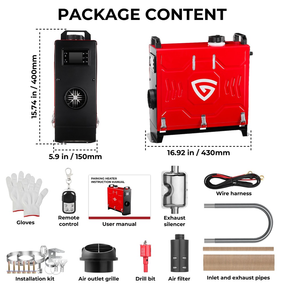 May you Like 8KW 12V 24V Diesel Air Heater W/ bluetooth & APP &110V AC Adapter For Car RV Van 108.99USD Buy it now Free shipping Diesel Air Heater for Car RV Indoors Fast Heating 110V AC 12V 24V DC Quiet LCD 81.99USD Buy it now Free shipping 8KW 12V Diesel Air Heater All In One bluetooth & 110V AC Adapter For Car RV Tent 81.99USD Buy it now Free shipping Upgrade Toolbox Diesel Air Heater 12V 8KW All-in-One Portable Parking Heater 110.99USD Buy it now Free shipping Diesel Air Heater All-in-one 12V 8KW + Converter Bluetooth App LCD Car RV Indoor 84.99USD Buy it now Free shipping Air Diesel Night Heater 8KW 12V-24V LCD Remote For Car Truck Motor Boat Van Bus 80.99USD Buy it now Free shipping Specifications: * Condition: 100% Brand New * Heater Power : 8KW * Fuel: Diesel (5L) * Voltage: 12V ~ 24V * Color: Black + Red * Material: Metal & ABS Plastic * Car Air Conditioning Type: Heating * Switch Type: LCD Switch * Rotated Speed: 4000(r/m) * Remote Control Distance: 100m(Without Obstacle) * Radiator Working Temperature: -40℃~+50℃ * Operating Temperature of the Oil Pump: -40℃~+40℃ Parcel Content: 1 x Parking heater 1 x power adapter 1 x 12v-24V cable harness 2 x fixed gaskets (for fixing exhaust pipes) 1 x Silencer 1 x muffler tailpipe 1 x L-shaped installation accessories for muffler 3 x installation screws for muffler 1 x air filter 1 x Remote Control 1 x 30mm drill 1 x Wind ripple tube cover 1 x Wind Ripple Tube 1 x intake corrugated pipe 1 x intake pipe curved metal fixing plate 2 x large metal clamp buttons 3 x small metal clamp buttons 1 x Small Steel Wire Hoop 8 x screws 2 x gloves May you Like 8KW 12V 24V Diesel Air Heater W/ bluetooth & APP &110V AC Adapter For Car RV Van 108.99USD Buy it now Free shipping Diesel Air Heater for Car RV Indoors Fast Heating 110V AC 12V 24V DC Quiet LCD 81.99USD Buy it now Free shipping 8KW 12V Diesel Air Heater All In One bluetooth & 110V AC Adapter For Car RV Tent 81.99USD Buy it now Free shipping Upgrade Toolbox Diesel Air Heater 12V 8KW All-in-One Portable Parking Heater 110.99USD Buy it now Free shipping Diesel Air Heater All-in-one 12V 8KW + Converter Bluetooth App LCD Car RV Indoor 84.99USD Buy it now Free shipping Air Diesel Night Heater 8KW 12V-24V LCD Remote For Car Truck Motor Boat Van Bus 80.99USD Buy it now Free shipping