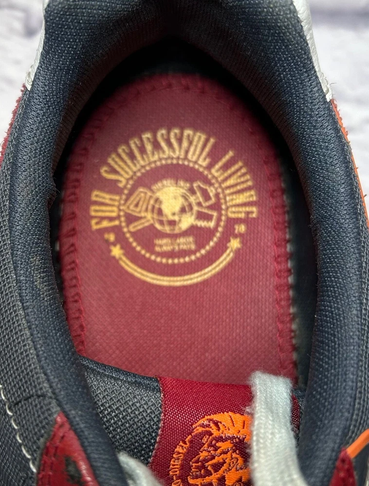 Diesel Aramis Sneakers Mens 11 RN 93243 Blue Burgundy Orange. Condition is Pre-owned. Shipped with USPS Ground Advantage.