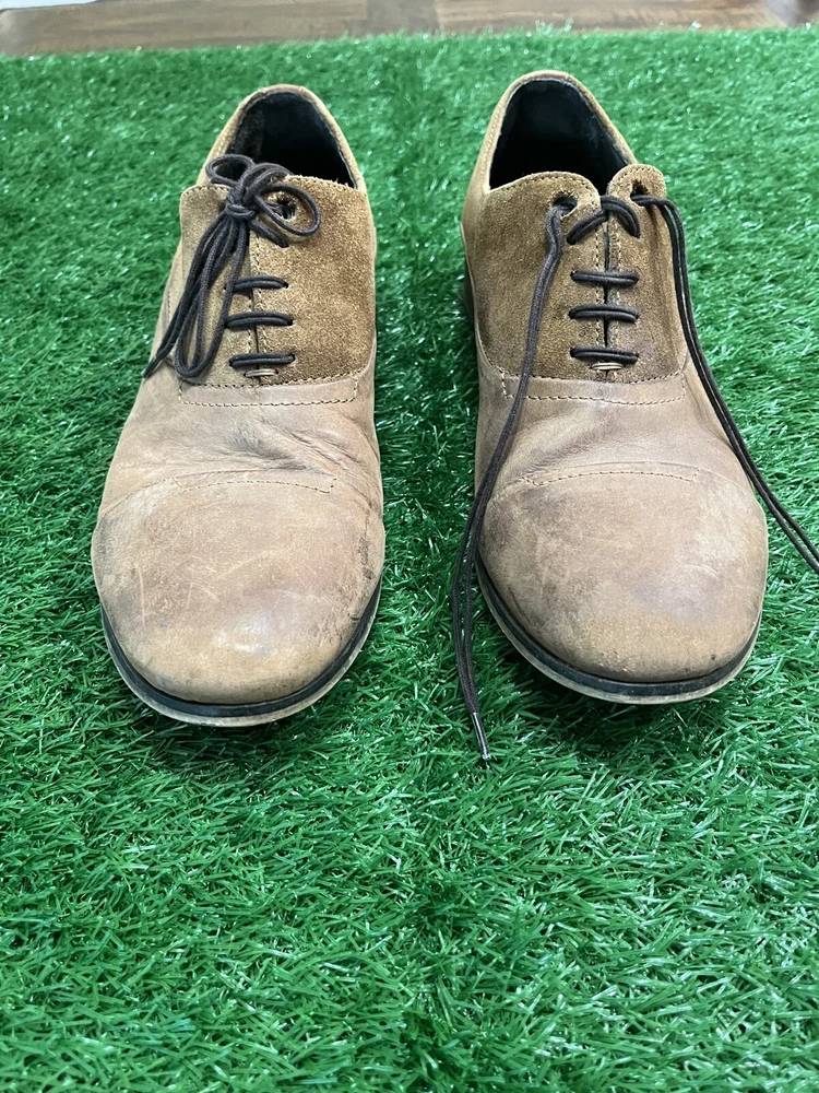 DIESEL BROWN COLOR BLOCK WHITE BROWN PERFORATED LEATHER TIP OXFORDS SHOES 43