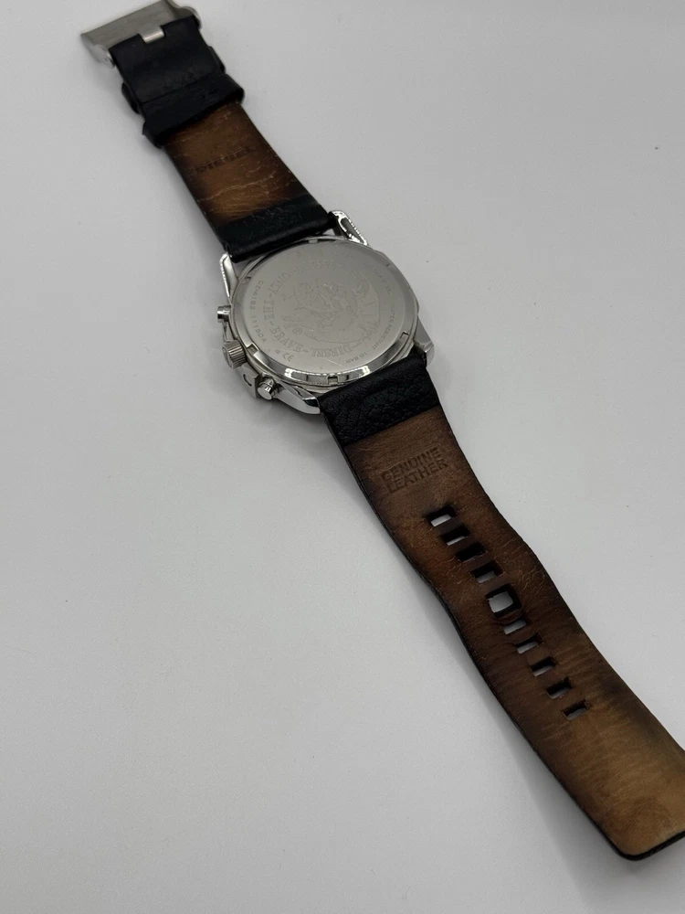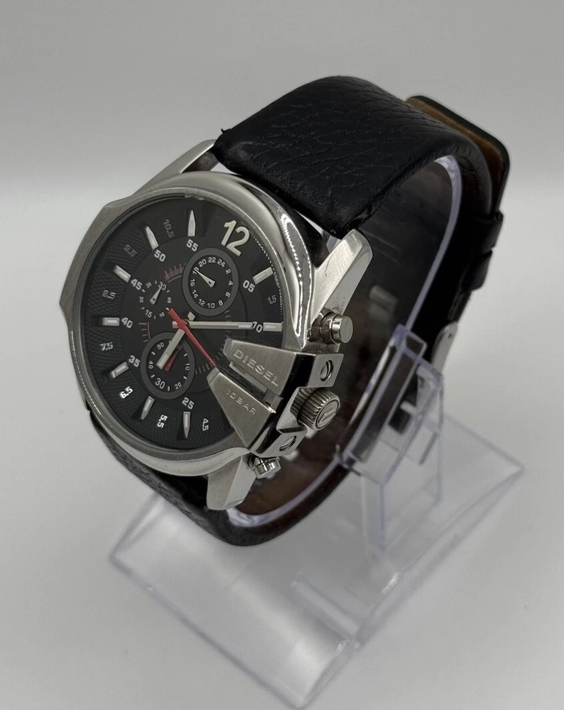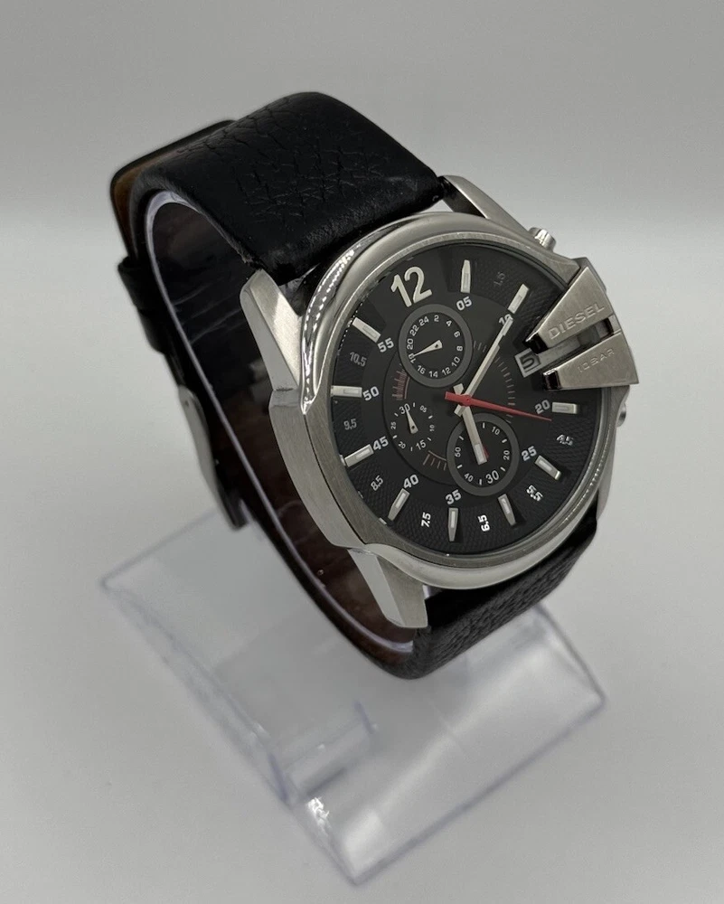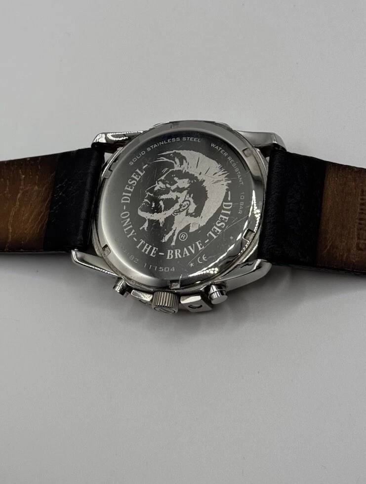 Display: Analog Chronograph Type: Chronograph Year Manufactured: 2010-Now Gender: Men's Reference Number: DZ4182 Dial Color: Black Band Material: Leather Brand: Diesel Features: Chronograph Movement: Quartz Case Color: Black Type: Wristwatch Band Color: Black Customized: No Case Material: Stainless Steel Department: Men Style: Casual