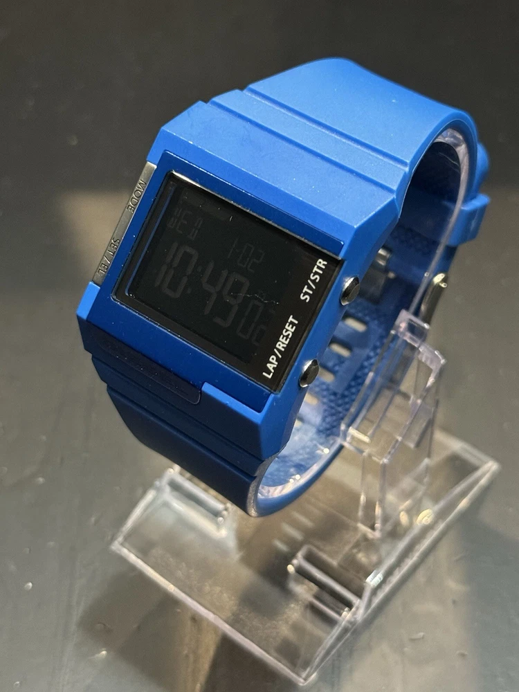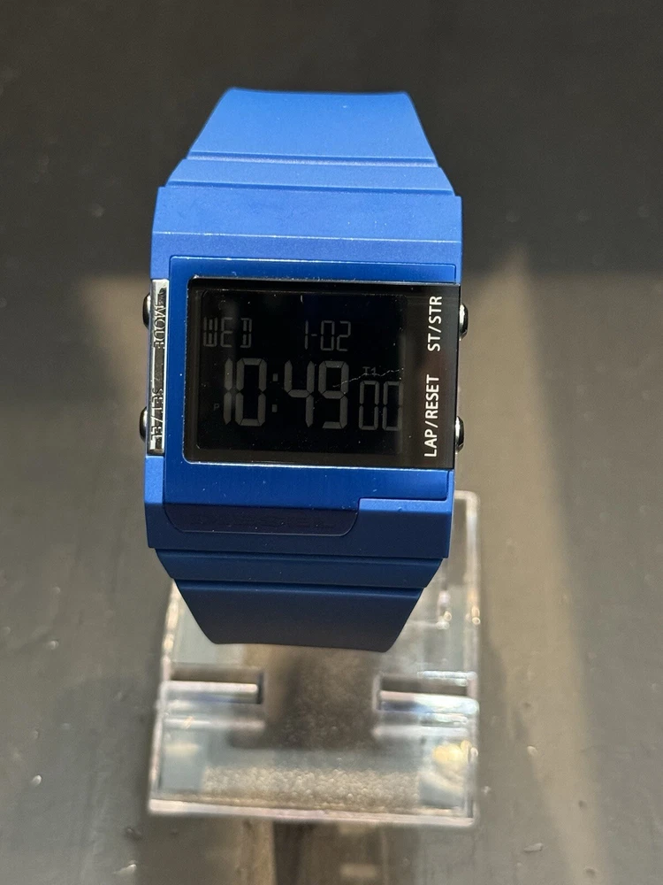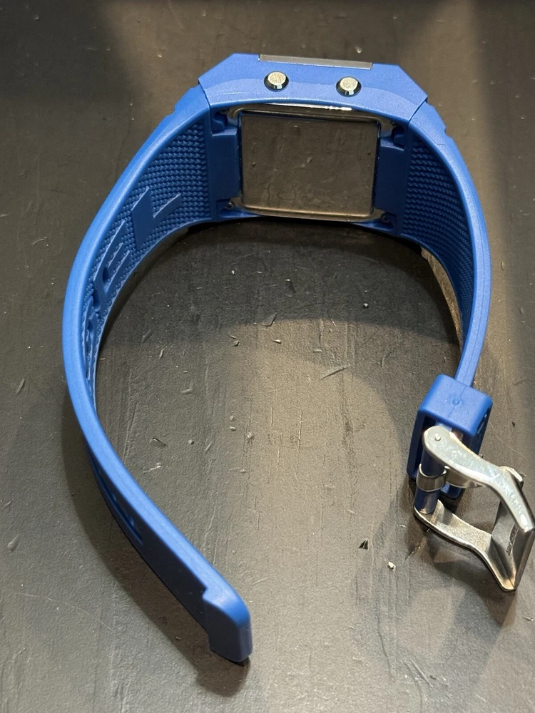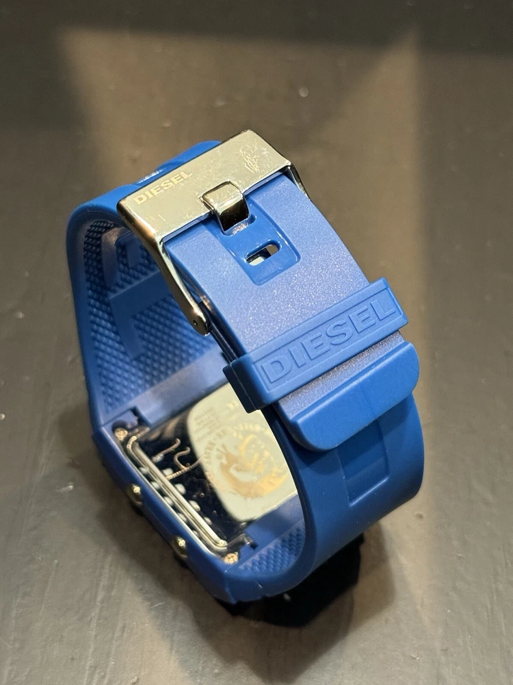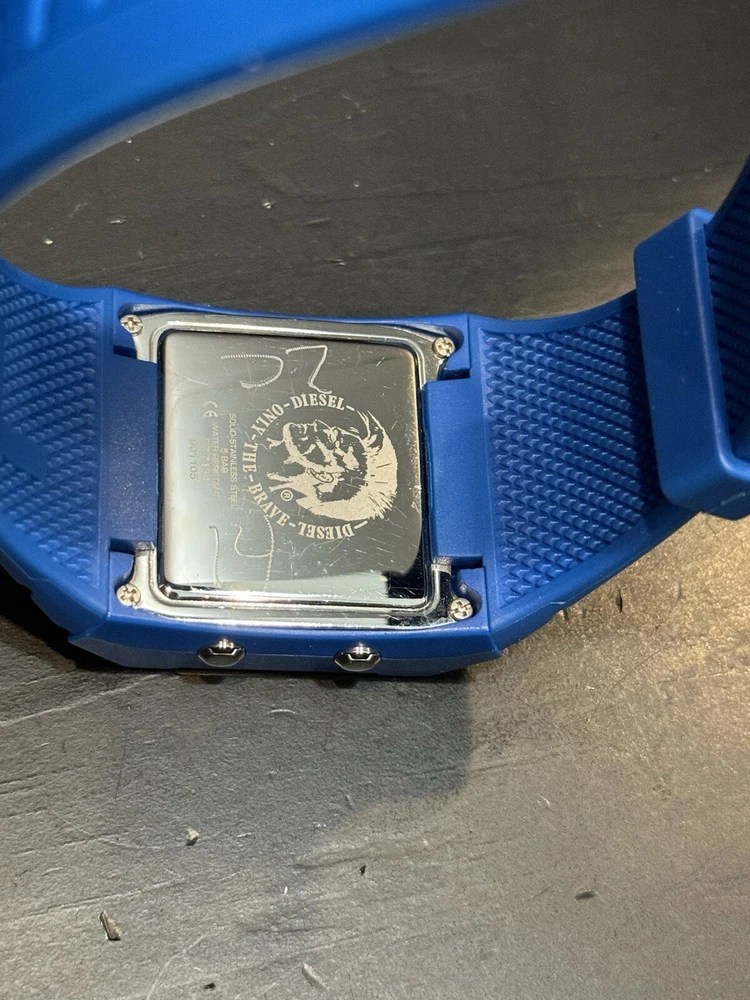 Water Resistance: 50 m (5 ATM) With Manual/Booklet: No UPC: NA Display: Digital Brand: Diesel Band Material: Rubber Model: NA Style: Casual, Sport Country/Region of Manufacture: Italy Case Material: Stainless steel + reinforced plastic Case Size: 45 mm Band Color: Blue Dial Color: Black Case Color: Black Movement: Quartz gtin13: NA Department: Unisex Adults Features: Water-Resistant Band/Strap: Two-Piece Strap Seller Warranty: No Band Width: 24 mm With Original Box/Packaging: No Handmade: No Max Wrist Size: 7.6-8 in With Papers: No Type: Wristwatch Watch Shape: Rectangle With Service Records: No Reference Number: DZ7134 Bezel Color: Silver