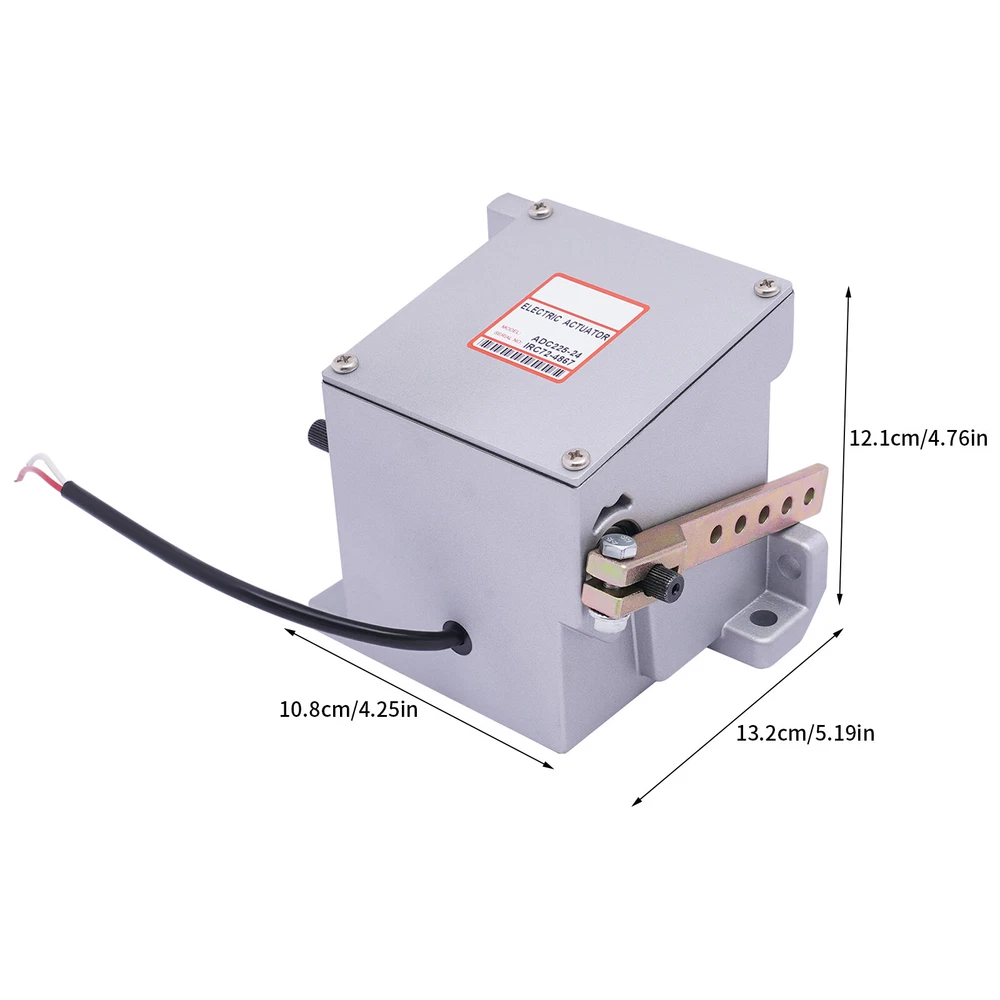 Diesel Engine Generator Actuator External Generator Electric ADC225-12V / 24V 12V/24V Electronic Actuator ADC225-12V/24V For Diesel Generator Parts Description The electronic actuator is made of metal, which is strong and durable. The 225 Series actuator is a rotary output, linear torque proportional electric servo designed for mechanical actuation of fuel system control levers. It is energized by appropriate speed control unit signals and is capable of 25 degrees of rotation. Key Features Adjustable Function: The linkage can be optimized by adjusting for an actuator current difference from no engine load to full engine load of approximately 2 amps/1 amp for 12-volt/24-volt systems. The no-load current is altered by varying the length of the linkage and the range is adjusted by changing the hole used by the rod end bearing on the actuator lever. Lever Design: It allows you to easily push the engine to the maximum full fuel position before starting it, and can smoothly return to the minimum fuel position, so as to achieve safe and stable operation. Strong and Durable: Made of metal with high strength and good rigidity, it can resist wear, corrosion, heat, shock, and deformation, allowing it to be used for a long time. Two Voltages to Choose From: There are two voltages for you to choose from: DC 12V and DC 24V. You can choose freely according to your needs. Complete Installation Tools: The package includes a lot of necessary tools, which can facilitate the installation. Quick Response: Smaller angles of actuator travel may improve transient performance, but will reduce the force available at the fuel control lever. Adjusting the actuator to operate through at least one-half of its stroke (12 degrees) will provide near optimum response. Compact: It is compact ( 5.2*4.3*4.8inch ), so you can easily move it. Protective Packaging: This product comes in a custom foam that resists compression and falls to prevent product damage in transit. Guaranteed Customer Service: We aim to provide quality products and services. If you have problems, please feel free to contact us. We will reply and solve the problem for you as soon as possible. Details Round Corners: The round corners can prevent scratching your hands. Smooth Surface: It has a smooth surface, so you can wipe it with a wet cloth. Application It applies to diesel generator sets. Specification Model: ADC225 Color: Silver Material: Metal Shape: Rectangular Style: Modern Working Voltage: DC 12V, DC 24V Input Current: 0-5A Max. Torque: 3Nm Model: General Feature: Shockproof Working Stroke: 25° Recommended Wire Size of the Cable Harness: (12V) At Least #16 Gauge (1.5mm), (24V) At Least #18 Gauge (1.0mm) Net Weight: 3.5kg/7.7lbs Gross Weight: 3.8kg/8.3lbs Package Size: 19*18*18cm/7.4*7*7inch Product Size: 13.2*10.8*12.1cm/5.2*4.3*4.8inch Working Principle The electromagnetic speed sensor generates an electrical signal that is proportional to the engine speed setting. If the signal is not proportional to the engine speed, the current change from the speed control unit to the actuator will change the magnetic force in the actuator. Then, the rotation of the actuator shaft will adjust the fuel of the engine and make the engine speed equal to the preset engine setting. The shaft rotation is proportional to the actuator current and is balanced by an internal spring. Troubleshooting Red to White (12V) 1.25ohms, Red to White (24V) 5.0 ohms Red to Housing Infinity White to Housing Infinity Energize the actuator to full fuel (follow the steps in the control unit publication) and manually move the actuator through its range. No binding or sticking should occur. If the actuator passes these tests, the problem is elsewhere in the system. Installation The actuator must be rigidly mounted as close as possible to the engine throttle lever. When selecting the mounting location, consideration must be given to possible linkage obstructions. The linkage should be direct, short, and as light as possible. Low-friction rod end bearings should be used throughout the linkage system. The linkage should be adjusted so that the fuel control minimum fuel and maximum fuel stops are used rather than the internal actuator stops. A. Drill the actuator mounting holes in a pre-fabricated mounting bracket. The position of the actuator on the mounting bracket should insure minimal misalignment between each end of the governor system linkage. The linkage ball-bearing rod ends can tolerate a maximum misalignment of 10 degrees. B. Affx the actuator bracket to the selected location on the engine. C. Attach the actuator securely to the mounting bracket. D. Adjust and secure the linkage rod and rod end bearings. For proportional actuators to operate with linear control systems, it is important to obtain a linear relationship between actuator stroke and fuel delivery. Package Included 1* 12V/24V Electric Actuator Other Accessories Notes For diesel fuel systems, the linkage configuration is typically linear. The actuator lever should be nearly parallel to the fuel control lever and perpendicular to the linkage rod at the mid-fuel position. The wiring must be capable of handling typical current levels of 8 amps/4 amps for 12-volt/24-volt systems without experiencing a significant voltage drop. Larger gauge wire will be necessary for cable lengths greater than 10ft. The actuators with 2-pin connectors are prewired for 12V/24V. Use the included harness to connect the actuator to the speed control unit. Upon release, recheck the linkage to insure both the linkage and the levers are securely fastened and that no binding is present. Please allow the slight color difference caused by the shooting light and 1-3cm error due to manual measurement, and make sure you do not mind before ordering. Payment Delivery details Terms of sales About us Contact us Payment We accept ebay payment 。 Fees such as import duties, taxes are not included in the item price or shipping costs. These charges are the buye