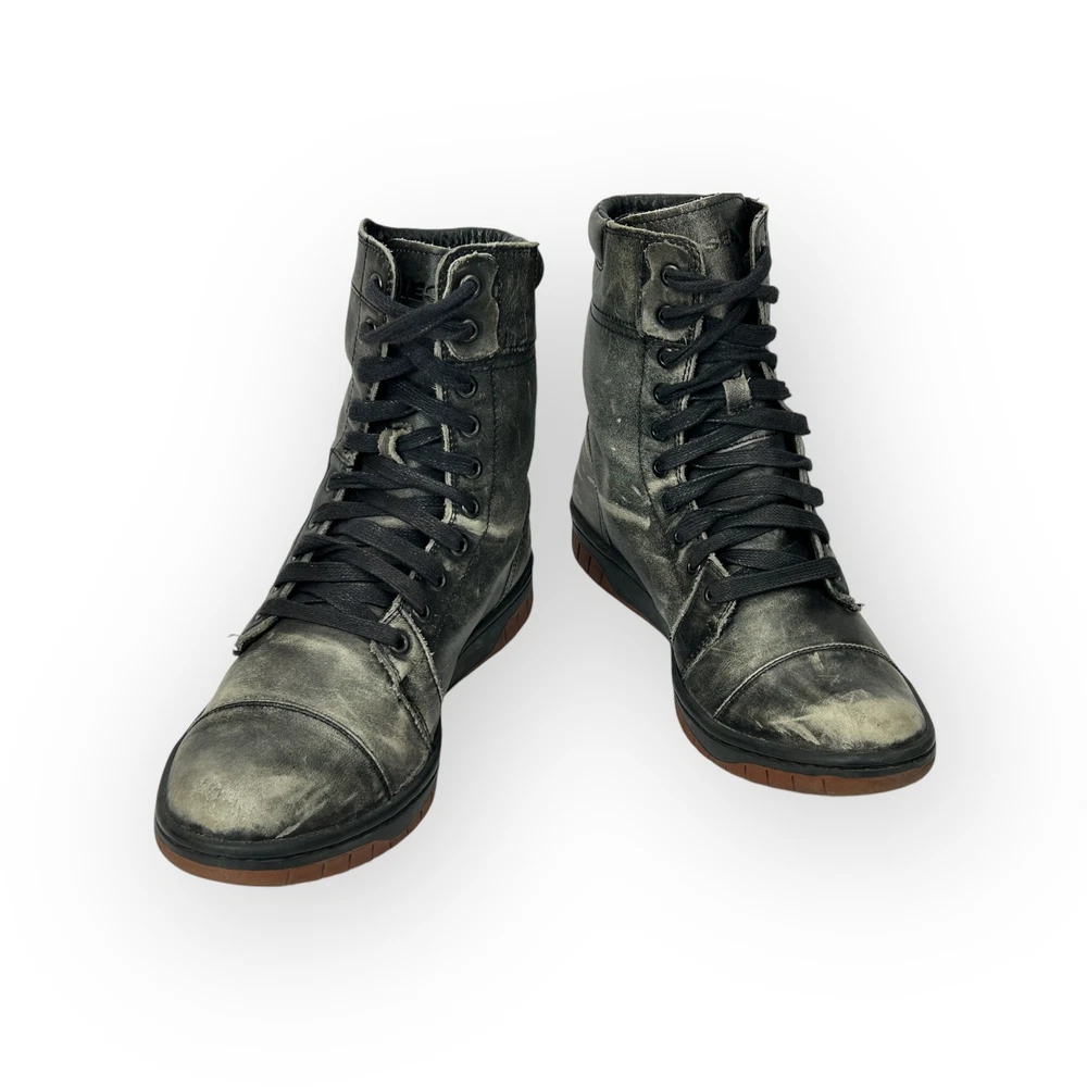 Diesel Gray Distressed Leather Basket Butch Zippy Mens Boots Size 9 42 Diesel Gray Distressed Leather Basket Butch Zippy Mens Boots Size 9 42 gently used condition 7-3/4" tall Listing and template services provided by inkFrog
