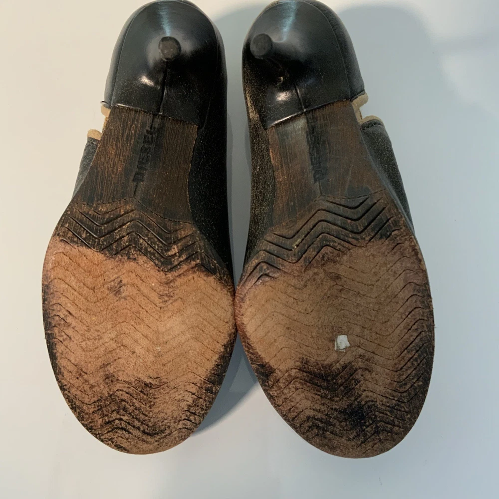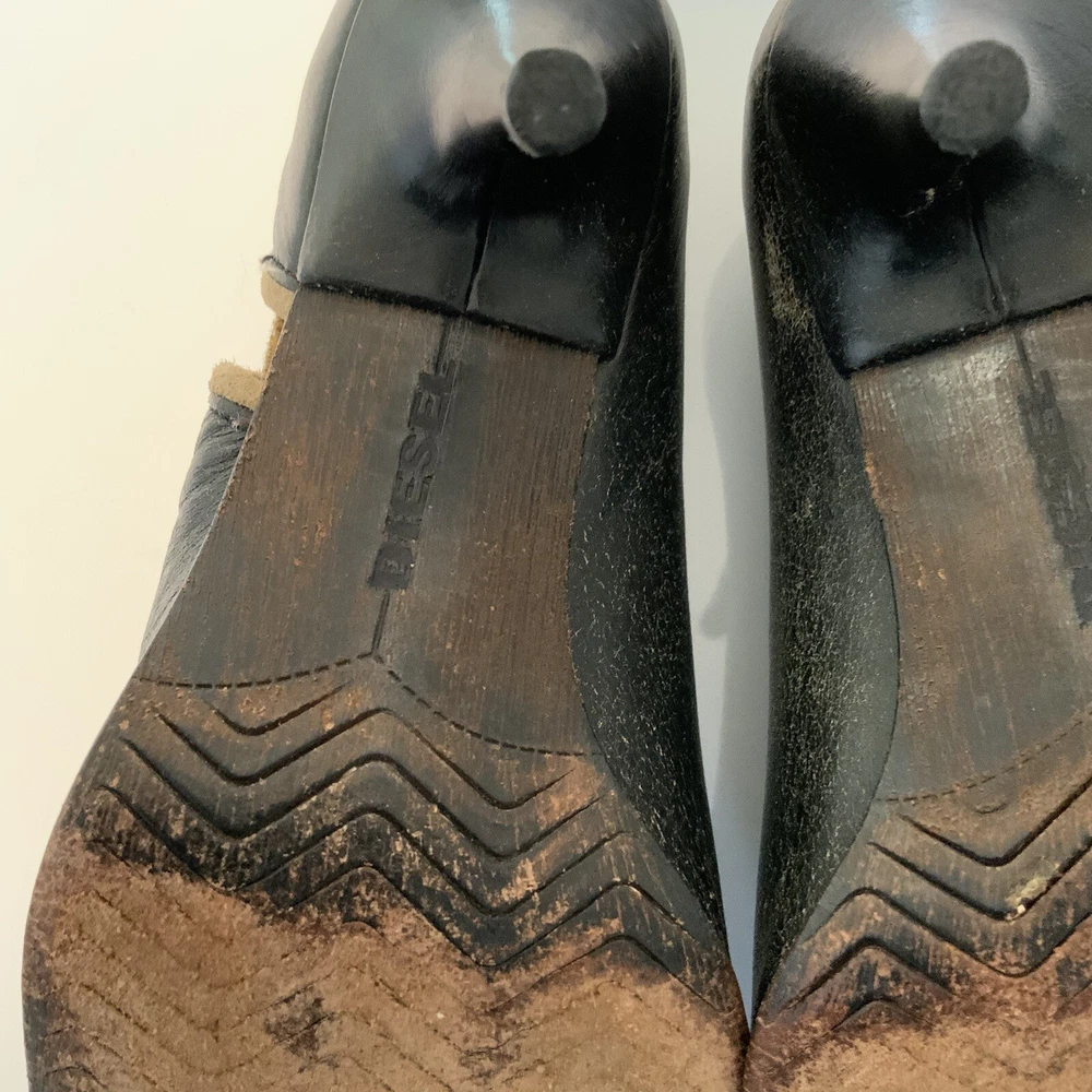 Heel Style: Stiletto Upper Material: Leather Platform Height: 1 in Features: Comfort, Cushioned UK Shoe Size: 5.5 Vintage: No Type: Boot Heel Height: High (3-3.9 in) Closure: Pull On Customized: No Color: Black Shoe Width: M Brand: Diesel Department: Women Toe Shape: Round Toe Personalize: No Calf Width: Medium Style: Bootie Country/Region of Manufacture: China Shoe Shaft Style: Ankle Lining Material: Leather Model: diesel Mellana US Shoe Size: 7.5 Pattern: Solid