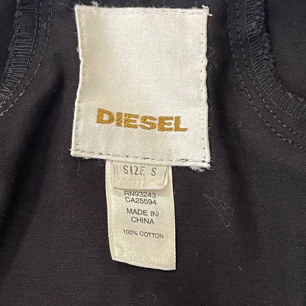 Diesel Industry Women’s Crop Denim Jacket Size S Black Button Front Pockets Condition: Pre-owned: Good used conditions with Flaw (Discoloration on left shoulder, please see pictures for exact conditions) Brand: Diesel Industry Style: Cropped Denim Jacket Color: Black Size: Small Department: Women’s Material: 100% Cotton Feature s: Button Closure, Long Sleeves, Collared, Front Pockets with Snap Button Closure, Crop Length, Machine Wash Chest: Approx. 17” Waist: Approx. 16” Sleeves: Approx. 24” Total Length: Approx. 21” Please see measurements and pictures to be sure of fit. Chest is measured from armpit seam to armpit seam. Waist is measured from side seam to side seam. Length is measured from shoulder seam to the bottom hem. Sleeve is measured from top of sleeve to hem cuff. All measurements are approximate and measured flat across.
