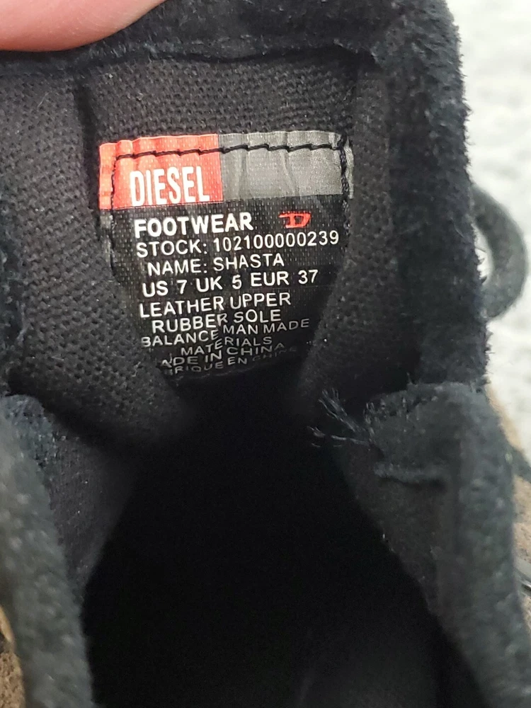 Department: Women Color: Brown Vintage: No Upper Material: Leather Brand: Diesel Toe Shape: Pointed Toe Heel Style: Kitten Type: Heel Occasion: Casual Seller Notes: “Good used condition, see description for any flaws” EU Shoe Size: 37.5 Pattern: Solid Country/Region of Manufacture: Unknown Heel Height: Low (1-1.9 in) US Shoe Size: 7 Outsole Material: Rubber UK Shoe Size: 5 Closure: Lace Up Style: Pump