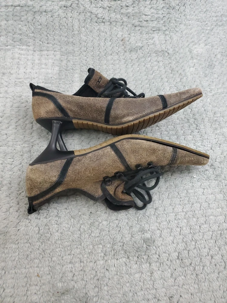 Diesel Kitten Heel Y2K Shasta Shoes Womens Size 7 Brown Lace Up Pointed Toe