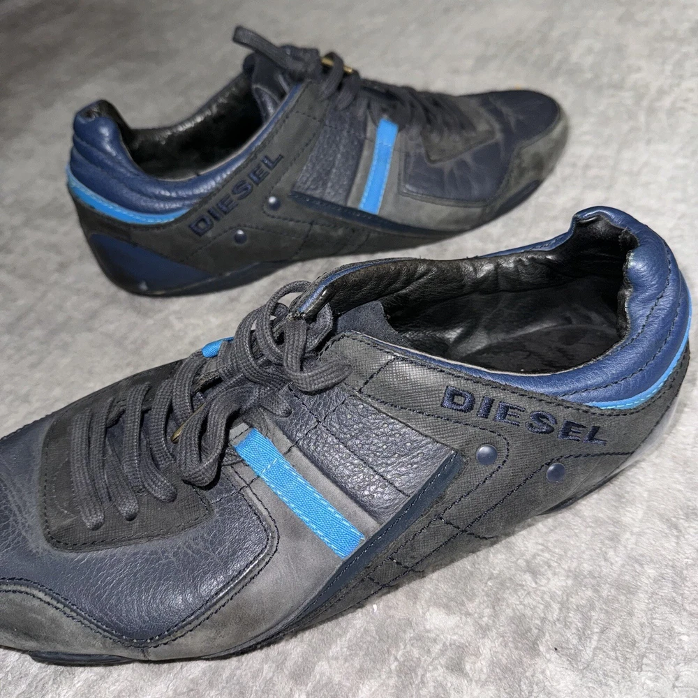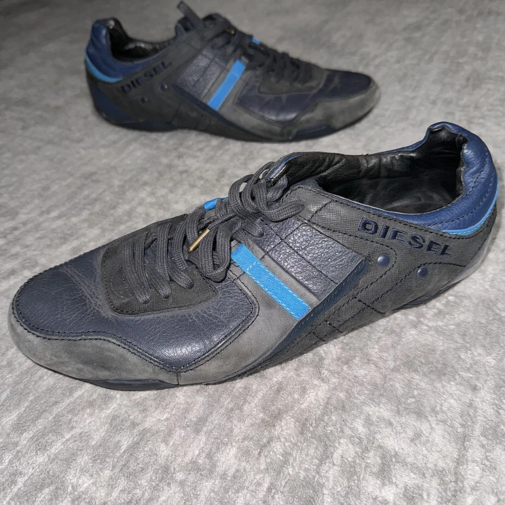 Diesel Korbin II Shoes Mens Size 12 Blue Leather Casual Lace Up Sneakers 93243. Condition is Pre-owned. Shipped with USPS Ground Advantage.
