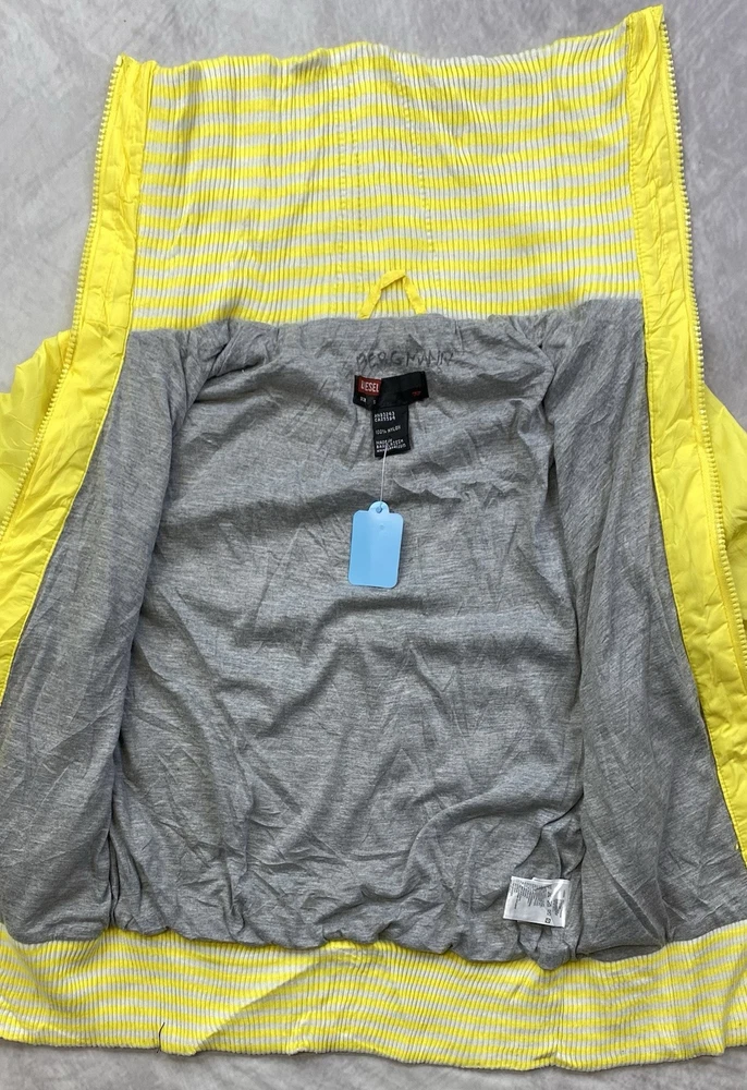Size Type: Regular Size: S Garment Care: Machine Washable Performance/Activity: Hunting, Walking Department: Men Insulation Material: Cotton Fabric Type: Softshell Theme: 90s, Art, Aztec, Biker, Bohemian, Dad, Designer, Geek, Nautical, Outdoor, Retro, Kapital Style, Vintage, Y2K Season: Fall, Spring, Summer, Winter Country/Region of Manufacture: Bangladesh Lining Material: Cotton Product Line: Diesel Model: Jacket Accents: Button, Logo, Zipper, Pocket Brand: Diesel Occasion: Casual, Travel Style: Motorcycle Jacket Features: All Seasons, Full Zip, Limited Edition Pattern: Solid Outer Shell Material: Cotton Color: Yellow Closure: Zip Personalize: No Handmade: No Type: Jacket Vintage: No
