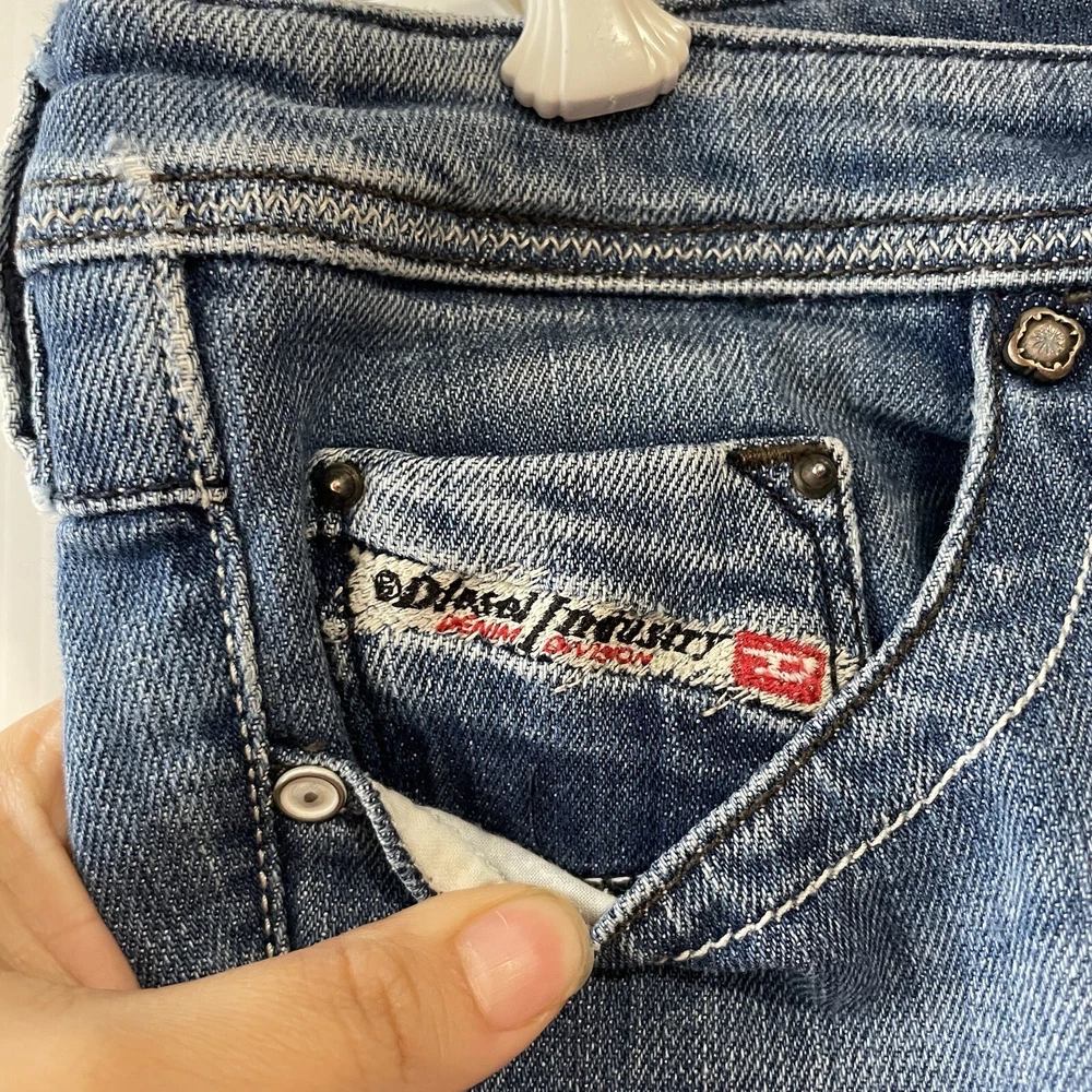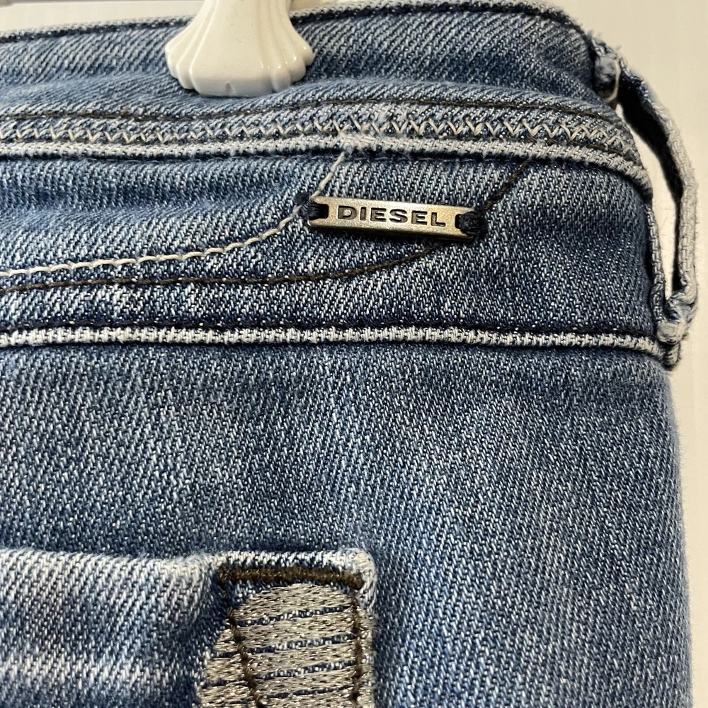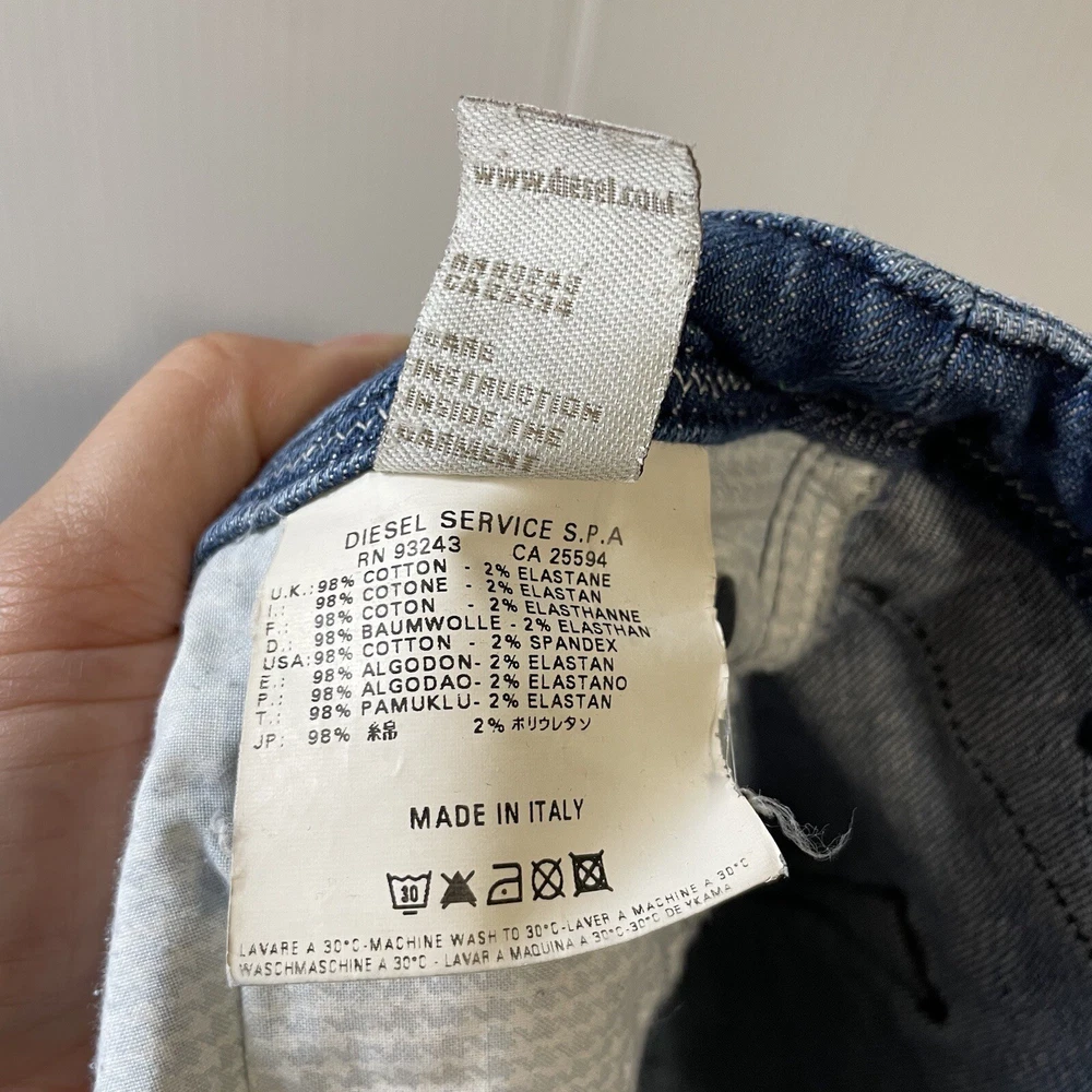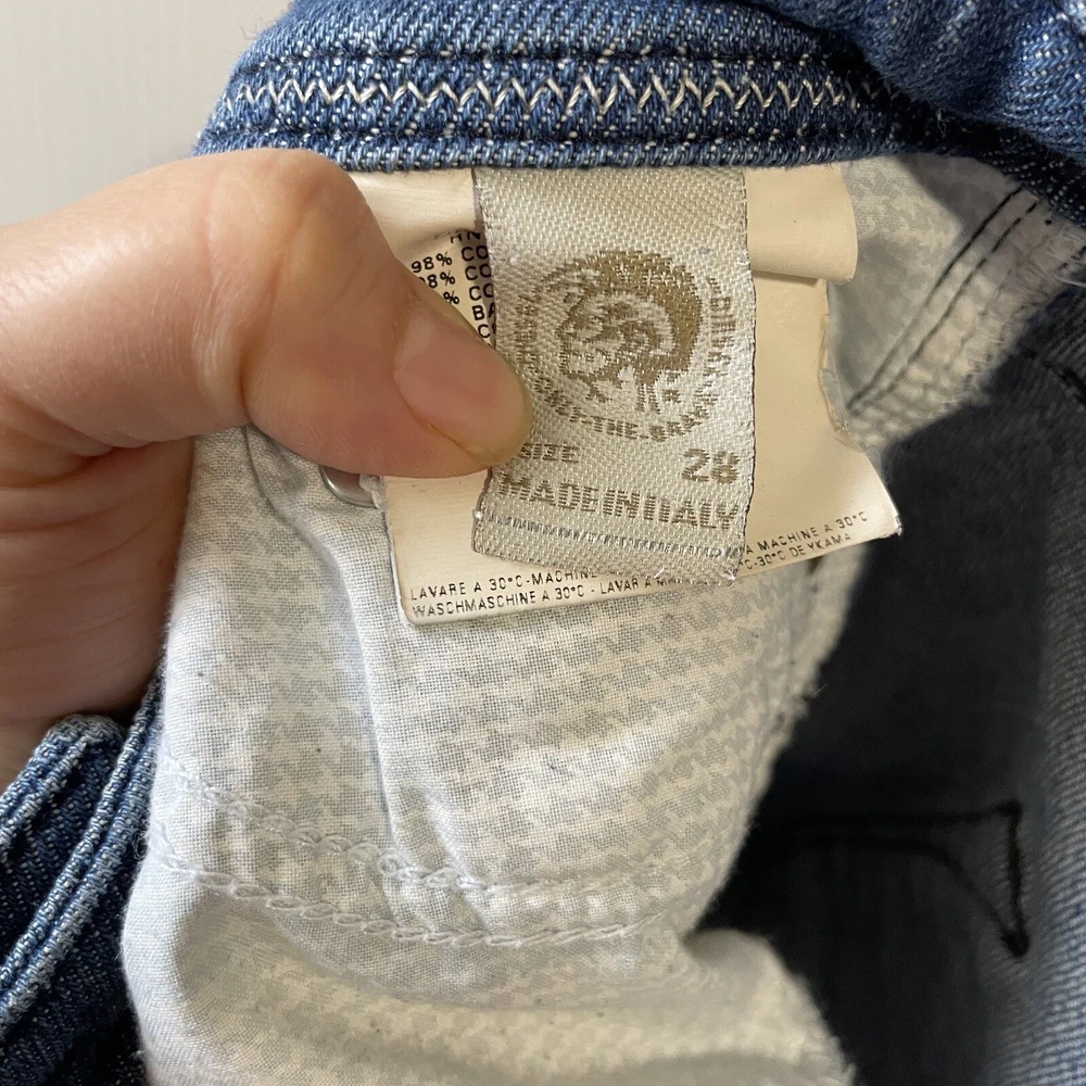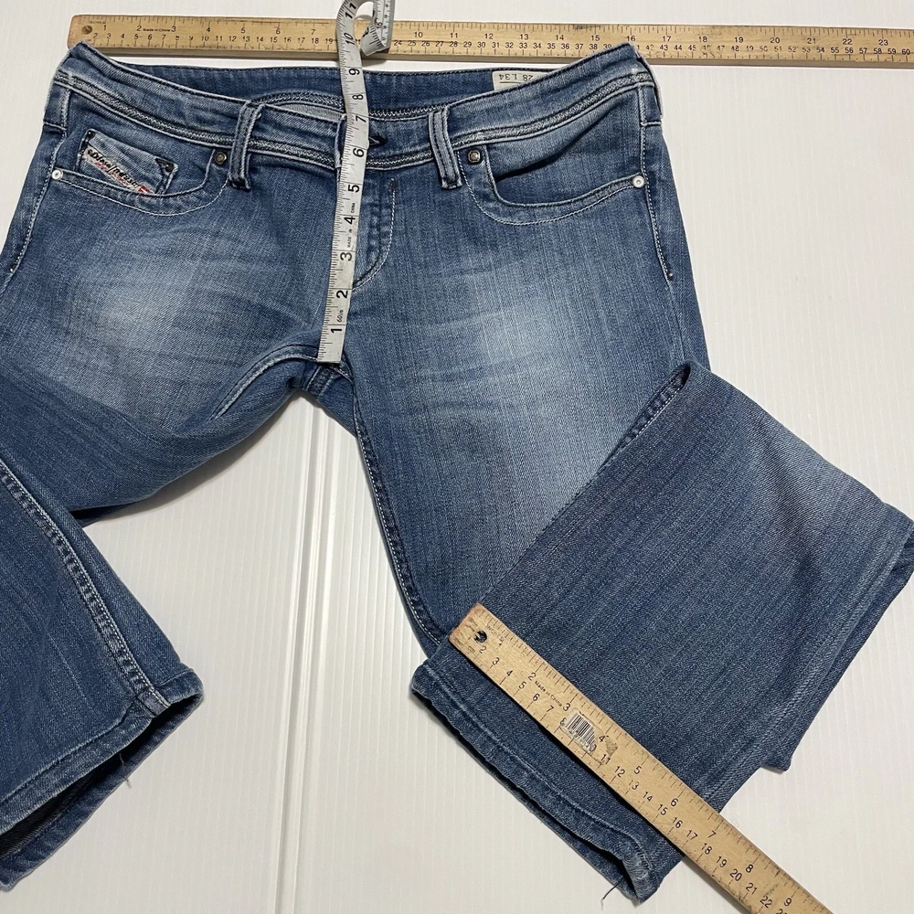 Size: 28X34 Material: Cotton Blend Fit: Regular Fabric Type: Denim Vintage: Yes Type: Jeans Color: Blue Pattern: Solid Brand: Diesel Inseam: Please Look Photo Model: .. Country/Region of Manufacture: Italy Accents: Button, Logo, Zipper Features: Pockets Department: Women Closure: Zip, Button Rise: Low (6.5-8.5 in) Size Type: Regular Style: Straight Fabric Wash: Medium Waist Size: Look Photo