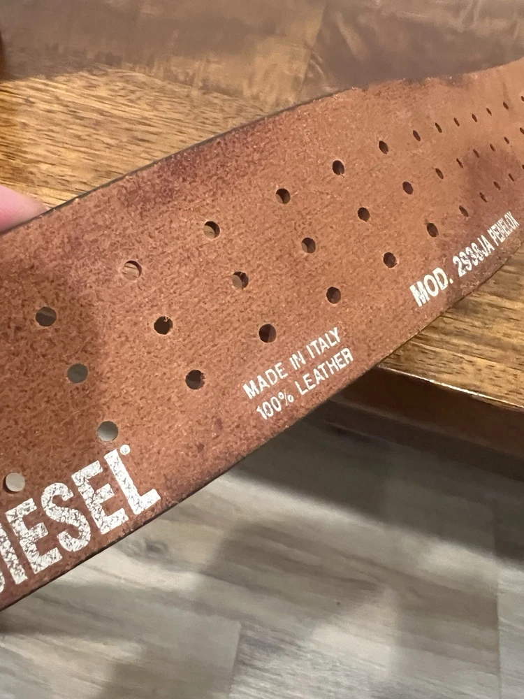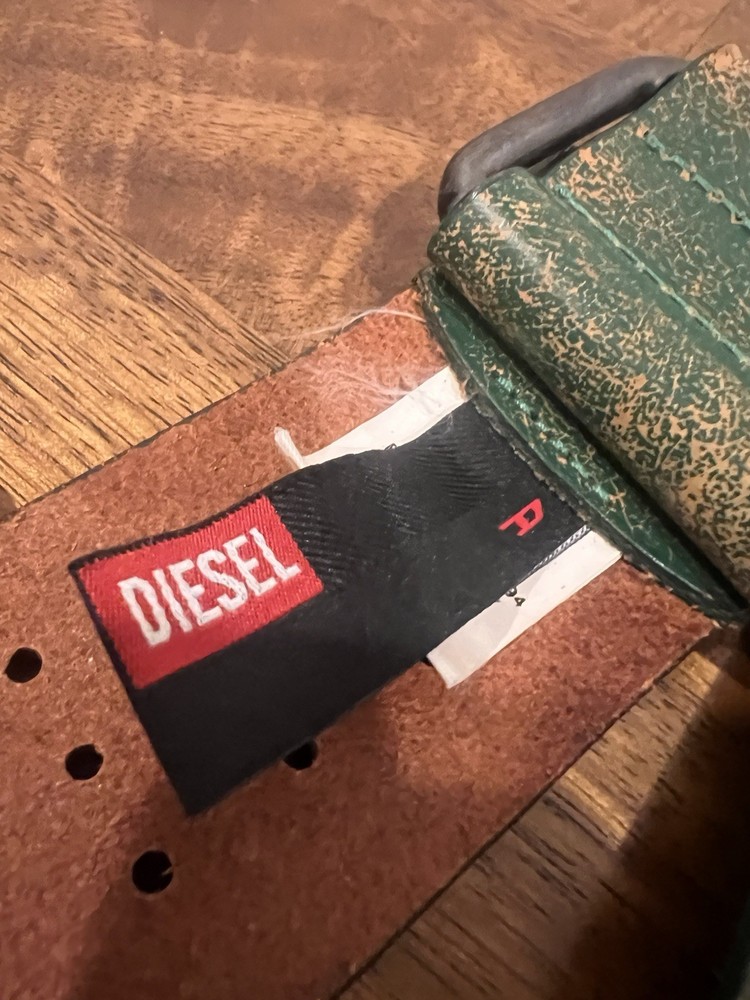 Diesel Men Green Leather Belt Grunge Y2K Punk made in Italy