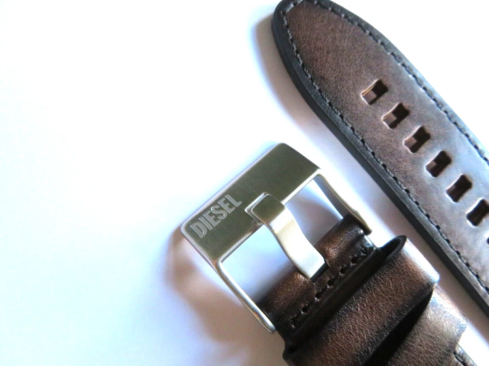 Watch strap original DIESEL Also fits other watches with 26 mm lug width. DIESEL: Model DZ4380 Material: Leather Color: Braun Bridge width: 26 mm Clasp: Stainless steel pin buckle, matt silver Scope of delivery: Band with two bars Mass: 1-Bridge Width: 26mm 2-Band length closure side: 90 mm 3-Band length hole side: 115 mm Watch strap original DIESEL Also fits other watches with 26 mm lug width. DIESEL: Model DZ4380 Material: Leather Color: Braun Bridge width: 26 mm Clasp: Stainless steel pin buckle, matt silver Scope of delivery: Band with two bars Mass:Â 1-Bridge Width: 26mm 2-Band length closure side: 90 mm 3-Band length hole side: 115 mm