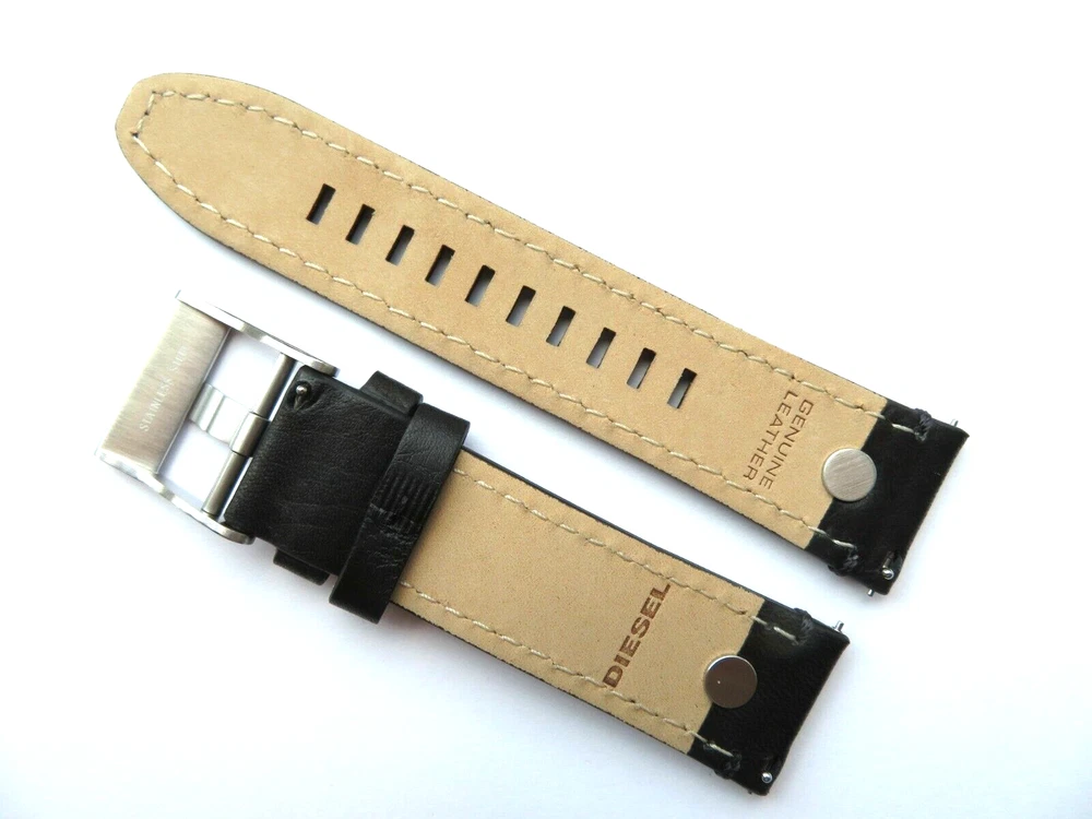 Watch strap original DIESEL Also fits other watches with a bridge width of 24 mm DIESEL: Model DZT2014 Material: Leather Color: Black Mass 1-bridge width 24 mm 2-Band length closure side 90 mm 3-band length hole side 110 mm Clasp: Stainless steel pin buckle silver Scope of delivery: Band with two bars Watch strap original DIESEL Also fits other watches with a bridge width of 24 mm DIESEL: Model DZT2014 Material: Leather Color: Black Mass 1-bridge width 24 mm 2-Band length closure side 90 mm 3-band length hole side 110 mm Clasp: Stainless steel pin buckle silver Scope of delivery: Band with two bars
