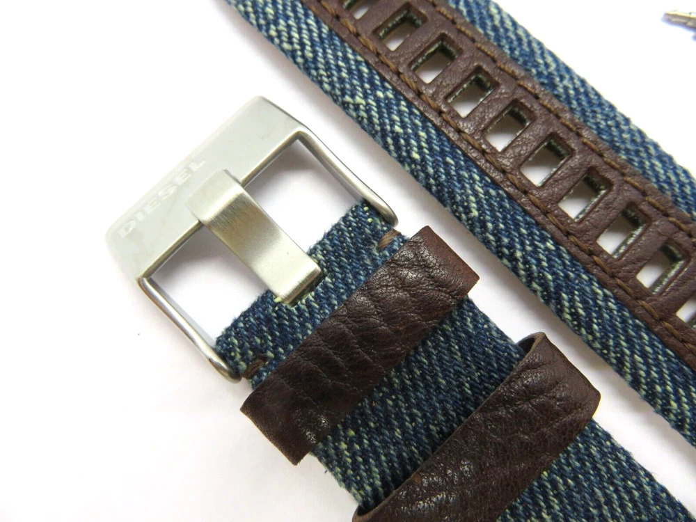 Watch strap original DIESEL Also fits other watches with 24 mm lug width. DIESEL: Model DZ1825 Material: Leather Textile Color: Jeans Blue Bridge width: 24 mm Clasp: Stainless steel pin buckle, matt silver Scope of delivery: Band with two bars Watch strap original DIESEL Also fits other watches with 24 mm lug width. DIESEL: Model DZ1825 Material: Leather Textile Color: Jeans Blue Bridge width: 24 mm Clasp: Stainless steel pin buckle, matt silver Scope of delivery: Band with two bars