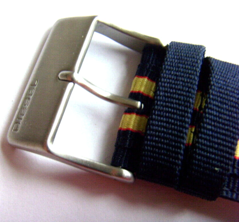 Watch strap original DIESEL Also fits other watches with a 27 mm bridge width. FOSSIL: Model DZ2059 Material: Leather Textile Color: Blue, Red, Yellow Bridge width: 27 mm Clasp: silver stainless steel pin buckle Scope of delivery: Band with two bars Watch strap original DIESEL Also fits other watches with a 27 mm bridge width. FOSSIL: Model DZ2059 Material: Leather Textile Color: Blue, Red, Yellow Bridge width: 27 mm Clasp: silver stainless steel pin buckle Scope of delivery: Band with two bars See also this products: Diesel Original Spare Band Leather Textile DZ1456 Watch Black Strap Canvas 32mm Diesel Original Spare Band Leather Textile DZ4217 Watch Black Strap Canvas 30mm Diesel Original Spare Band Leather Textile DZ7222 Watch Black Strap Canvas 27mm Diesel Original Spare Band Leather Textile DZ1412 Watch Green Strap Canvas 22 MM Diesel Original Spare Band Leather Textile DZ4307 Watch Green Strap Canvas 26 MM Diesel Original Spare Band Leather Textile DZ7206 Watch Green Strap Canvas 34 MM Diesel Original Spare Band Leather Textile DZ5569 Watch Jeans Denim Blue Strap Diesel Original Spare Band Leather Textile DZ4572 Watch Jeans Denim Blue Strap