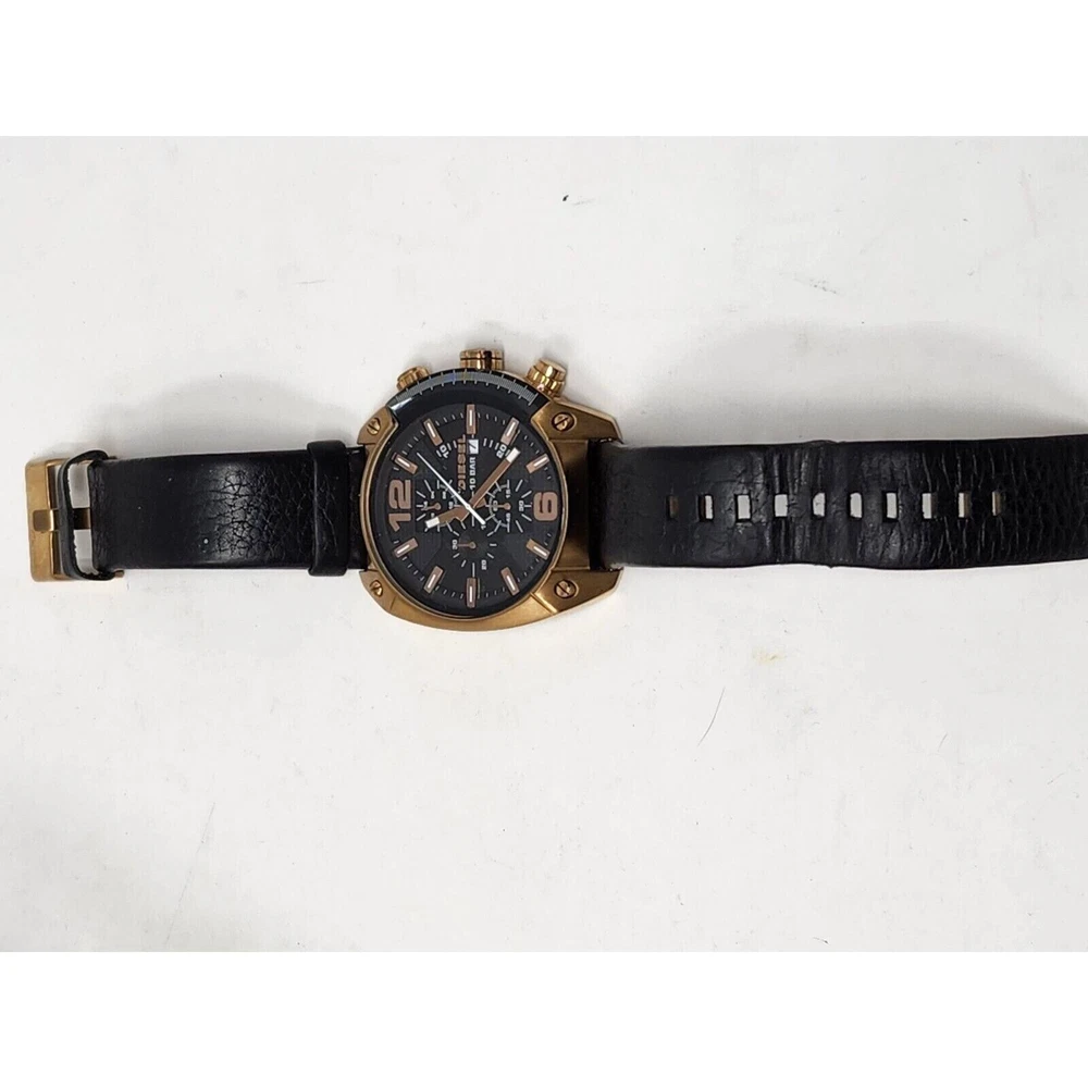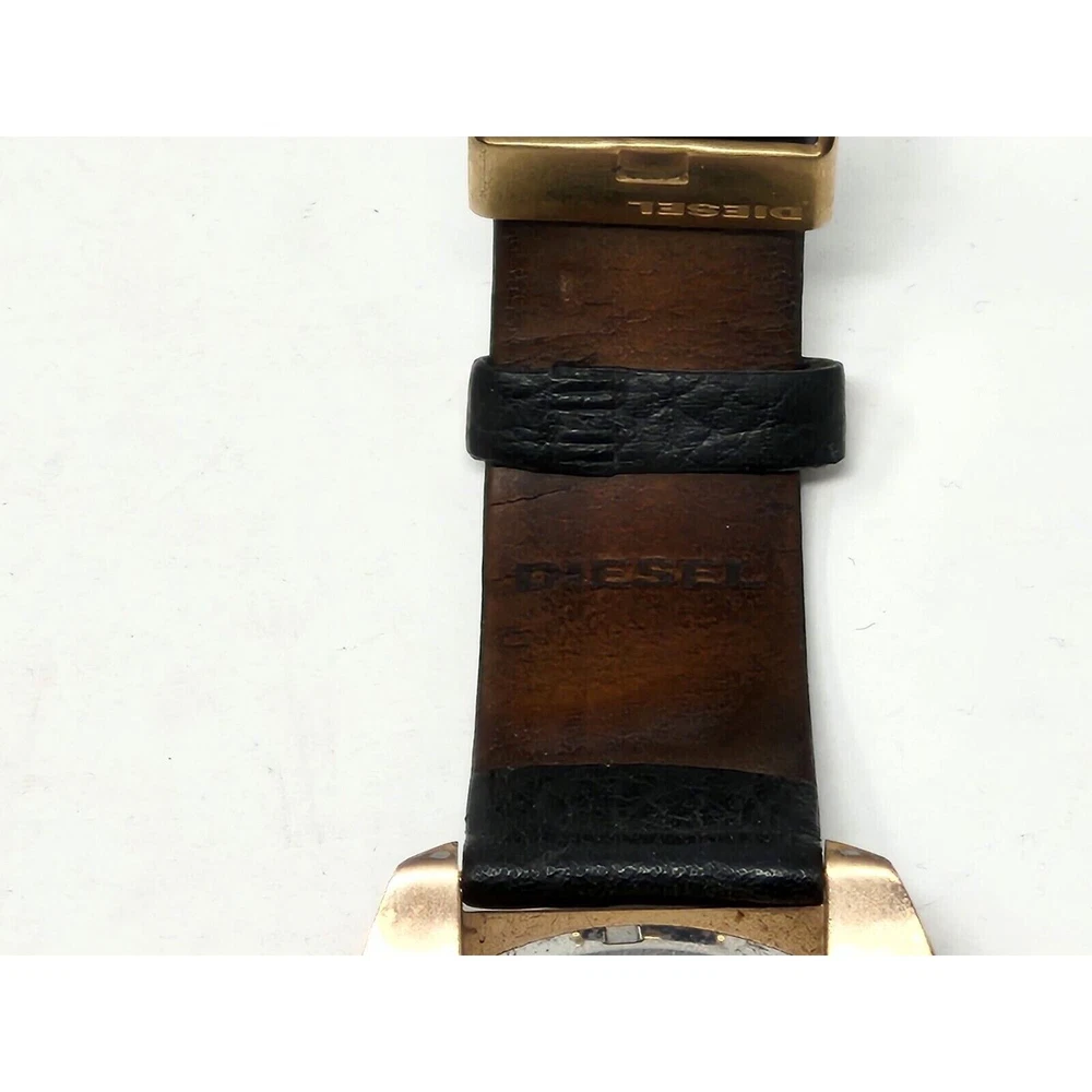 This is a Diesel Overflow watch in rose gold/black color with a leather wristband. Watch has minor wear as pictured but is in great condition otherwise. Will need a battery. This will be crosslisted. Thanks for viewing!