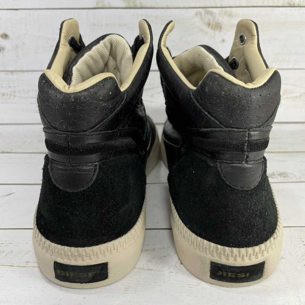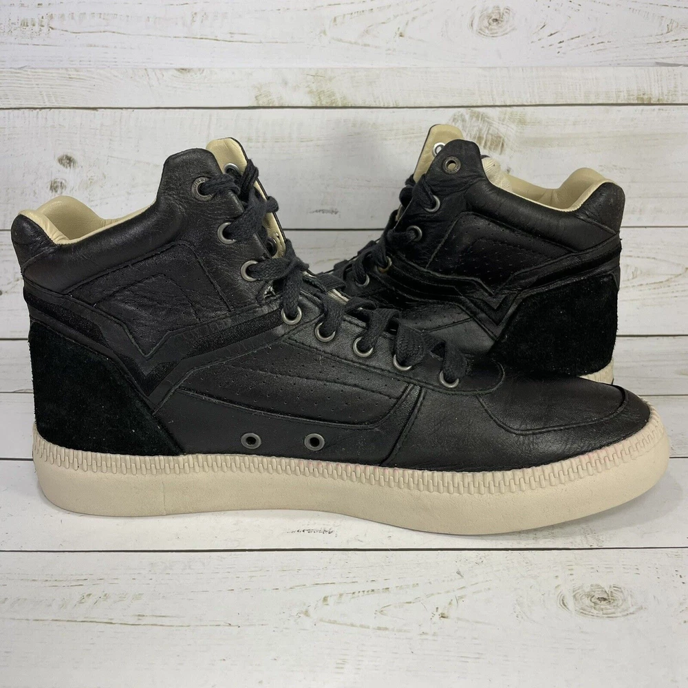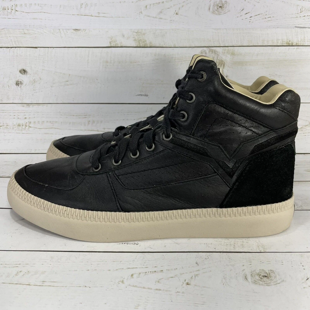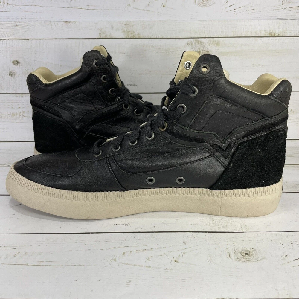 Diesel S-Spaark Leather Mid Top Sneaker Mens Size 10 Black Leather Moto Riding