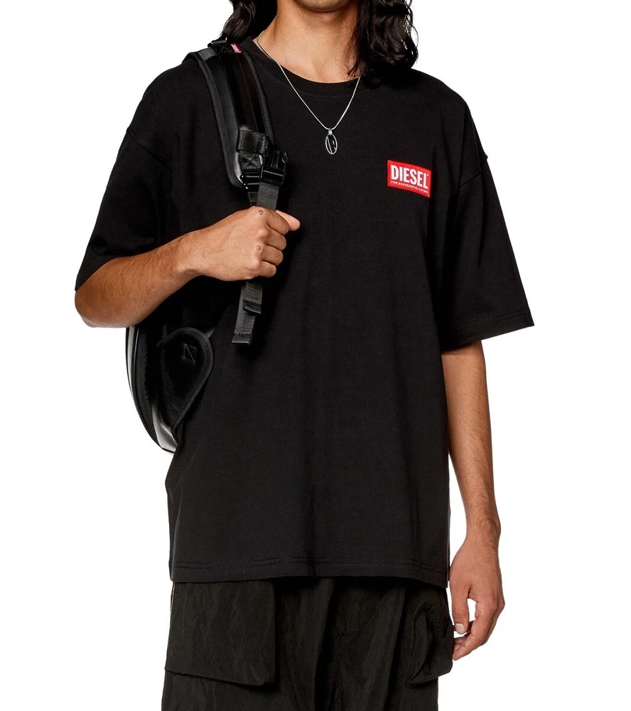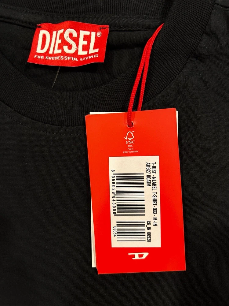 Elevate your casual look with this Diesel T-Nlabel-L1 Men's T-shirt. Crafted with attention to detail, this black tee features a logo patch on the front that adds a touch of sophistication to your outfit. Made from high-quality materials, this regular-sized shirt is comfortable to wear all day long. Perfect for men who want to make a statement, this T-shirt is ideal for any occasion. Whether you're going out for a night with friends or running errands, this shirt will keep you looking stylish and feeling comfortable. Add this Diesel T-Nlabel-L1 Men's T-shirt to your wardrobe today and elevate your fashion game!