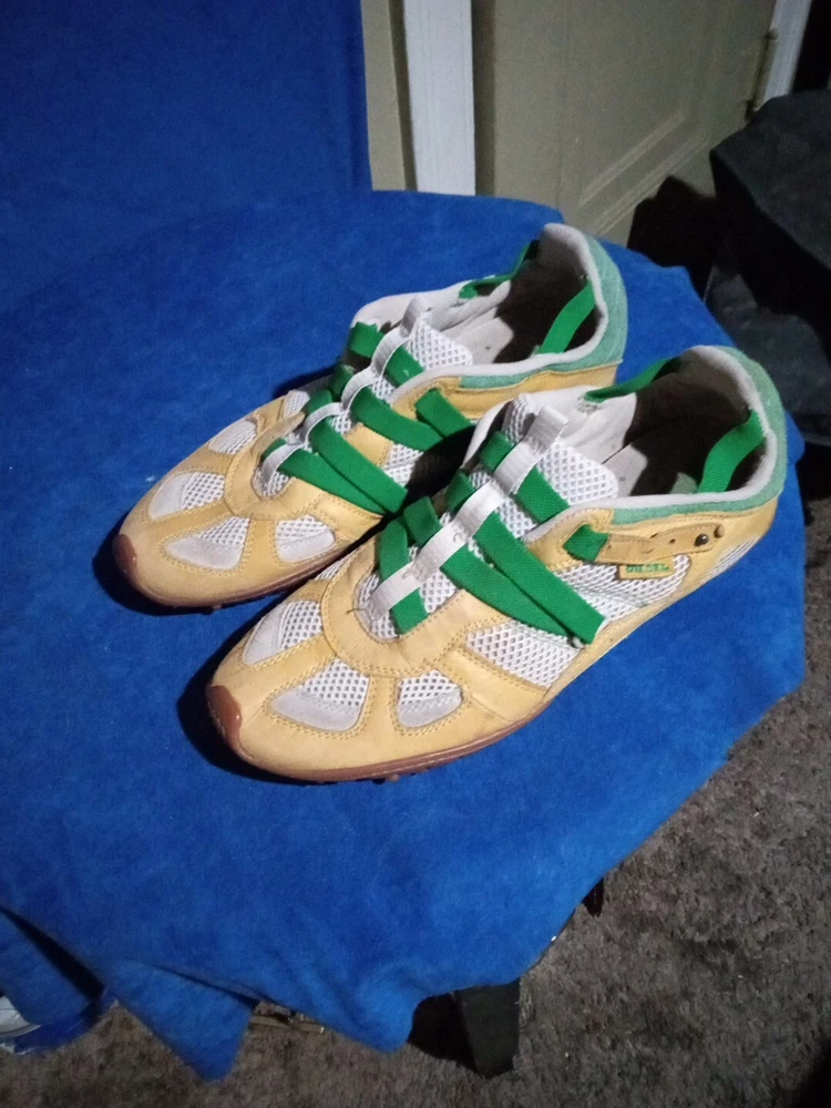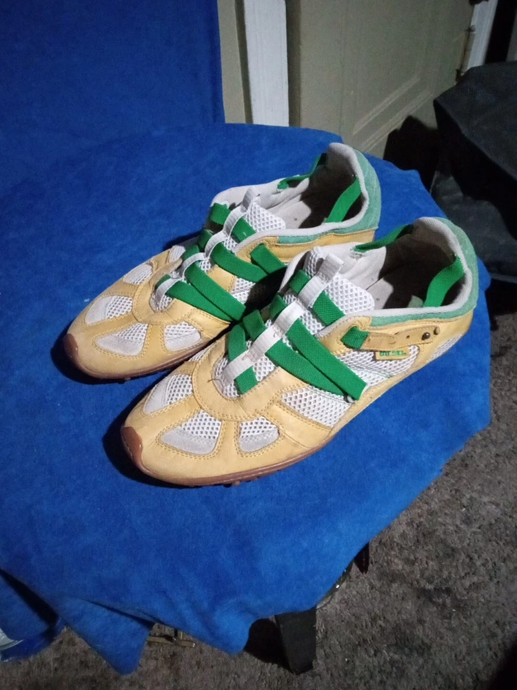 Elevate your tennis game with these stylish and comfortable Diesel tennis shoes for men in size 12. Featuring a low top shoe shaft style, these sneakers are perfect for both on and off the court. The multicolor design adds a touch of sporty flair, while the leather upper material ensures durability and longevity. With a style code of 101100013569, these shoes are part of the tennis shoes product line and are customized to fit your needs. Whether you're playing a game of tennis or just running errands, these athletic shoes will provide the support and comfort you need. So step up your game and add these Diesel tennis shoes to your collection today.
