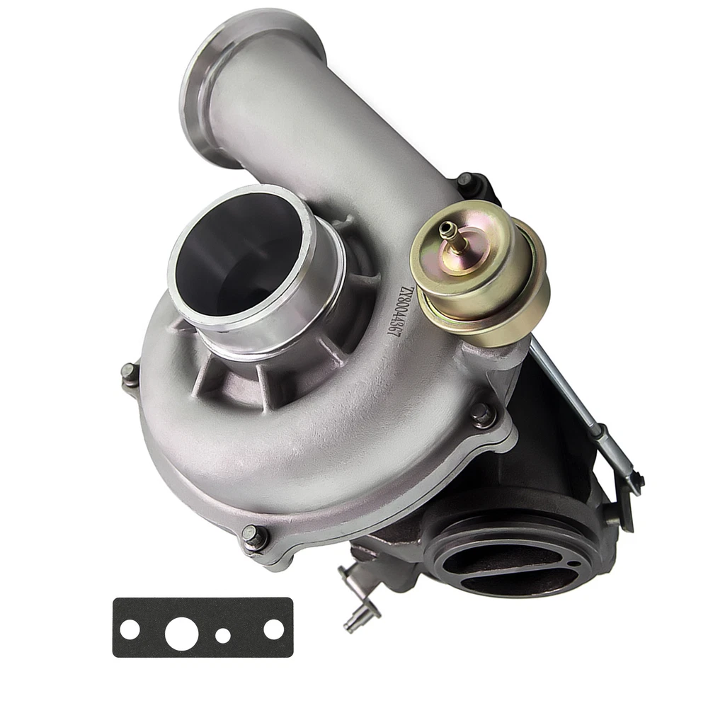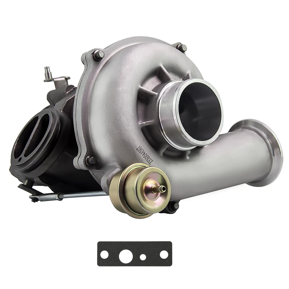 Fit for: for Ford Excursion 7.3L Powerstroke Diesel Engine 2000-2003 for Ford F Series Trucks 7.3L Powerstroke Diesel Engine 1999.5-2003 for Ford Pick-up Truck 7.3L Powerstroke Diesel Engine 1999.5-2003 Note!!!!! * Our turbo only fits for Late models. * 1999 Model Identification * Early 1999 Models: V8 Powerstroke Fender Badge and 4 Bolts Securing the Compressor Housing. * Late 1999 Models: Powerstroke Badges on Doors and 5 Bolts Securing the Compressor Housing. Turbo model: GTP38 Engine Model: Power-stroke Interchange Part Number: GTP38, 1831383C92, 702012-9006,7020129006 F81Z6K682CARM , 1831383C93, 1831383C94, 7020120010, 702012-0010, 1831450C91, 1831450C94, 1831452C91, 1831660C92, 7020120005, 702012-0005, 7020120006, 702012-0006, 7020120012, 702012-0012, 7020125012S, 702012-5012S, 7064475003, 706447-5003, 7064479003, 706447-9003, Specification: Turbine: Turbine Wheel Diameter:76.9mm / 67.7mm Turbine Trim: 77.5 Compressor: Compressor Wheel Diameter:80mm / 59.3mm Compressor Trim:54.9 Turbo Model: GTP38 Engine Code: 7.3L Cooling Type: Oil cooling Bearing Type: Floating Bearing Thrust Bearing: 270 degree Turbo Type: Twin-Scroll Horsepower: Up to 275 HP Universal Fitment: No Finish: Matte Condition: 100% Brand New Accessories: You will get exactly as shown in the picture above Package Size:38x36 x 34 cm Package Weight: 15850g Features * Product Material 1. Turbine housing: Ductile iron QT450-10- temperature resistant up to 700℃ 2. Steel turbine wheel: K418 alloy - high oxidation stability and resistance up to 900℃ 3. Compressor housing: ZL104 aluminum with lightweight 4. Compressor wheel/blades: Cast aluminium blades – superior air tightness & corrosion resistance * Product 1. OEM-quality and size with little modification 2. Rich experience in turbo production and own factory 3. High-Speed oil seal ring and Precision clearance * Technology Advantage 1. 100% balancing Test by TURBOTECHNICS VSR3 2. G3-min-Flow VNT Turbo testing 3. Advanced Actuator Tester/Programmer NOTE: * Please confirm your original turbo PART NUMBER before Purchasing * Professional installation is highly recommended * Before installing the new turbocharger, the cause that led to the failure of the turbo must be analyzed and eliminated (e.g. insufficient oil supply, foreign bodies in the intake area, crankcase ventilation without function, etc.)! Friendly Suggestions The following situation indicate the turbo failure: 1. Black Exhaust Smoke 2. Excessive Engine Oil Consumption 3. Blue Exhaust Smoke 4. Turbo Noisy 5. Cyclic sound from turbo 6. Oil Leak from compressor seal 7. Oil Leak from turbine seal Our product would not come with the instruction of installation, highly suggest you find professional mechanic to help you install it, here are somecheck list before installation. 1. Replace oil supply lines and fittings. These lines often become plugged with decomposed oil which restricts oil flow and drainage. 2. Do not used silicone or thread tape 3. Make sure all openings to turbo are open and not plug or capped off. 4. Shut off fuel or disable ignition and crank the engine for at least 15 seconds or until oil pressure is raised 5. Allow engine to fast idle (1,000 RPM) for 3 - 5 minutes to for Seat turbo seals 6. Always let engine idle for 3 -5 minutes before shut down, otherwise the turbo will continue to spin without oil lubrication and pressure 7. When changing oil, be sure to prime oil filter MXR04FXJT