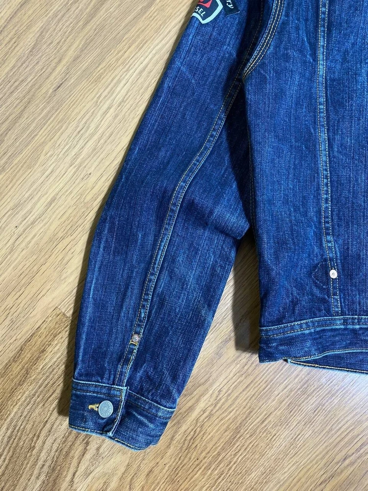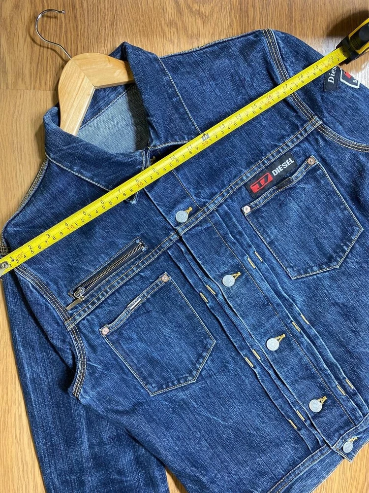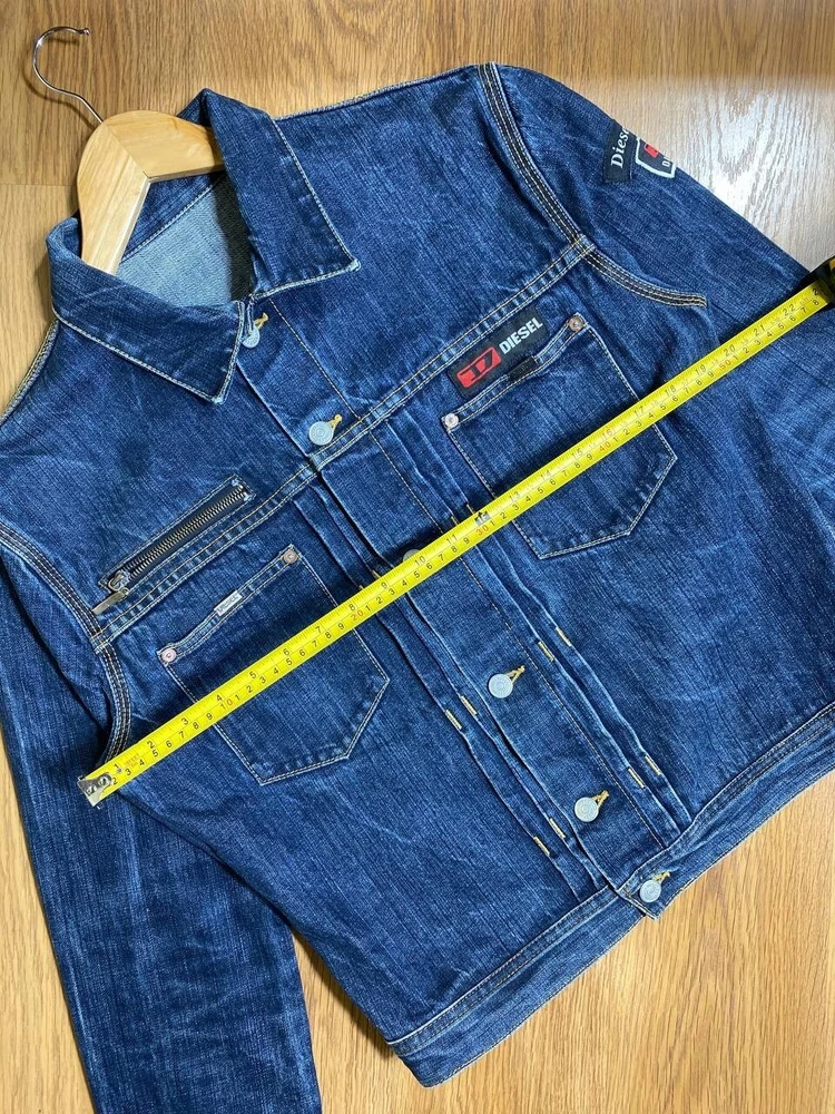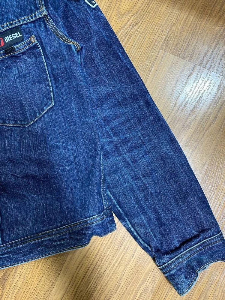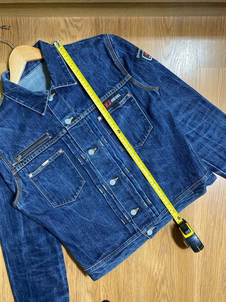 Color: Blue Season: Fall, Winter Department: Unisex Adults Features: Full Zip, Pockets Closure: Button Type: Jacket Outer Shell Material: Cotton Fabric Type: Denim Size: M Size Type: Regular Brand: Diesel Accents: Logo, Zipper Style: Bomber Jacket