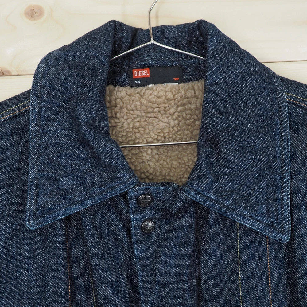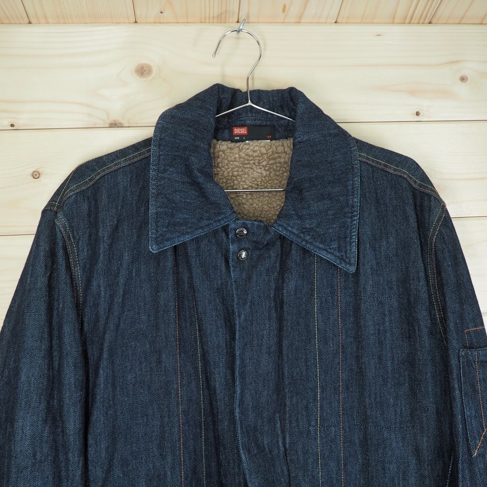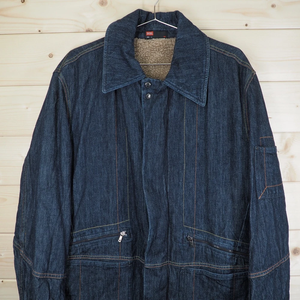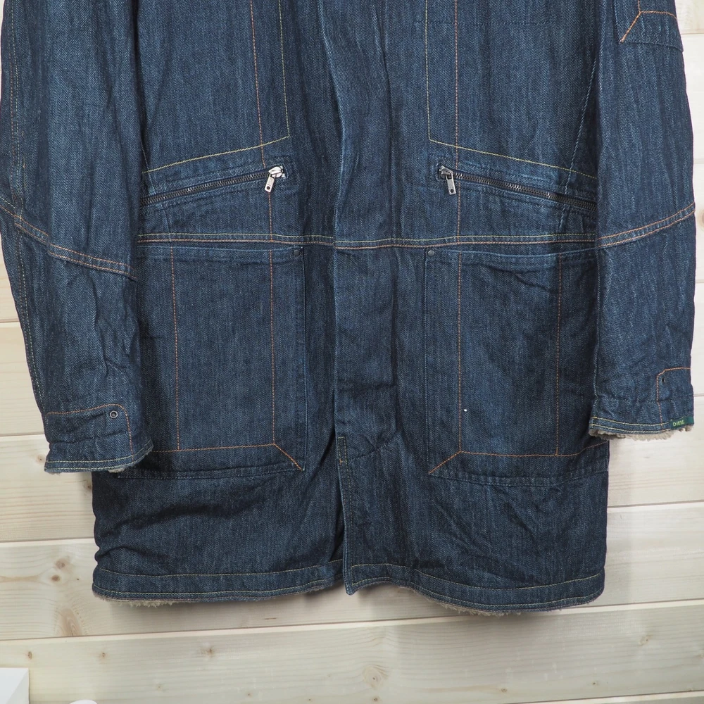 Diesel Vintage Sherpa Fleece Long Denim Jacket Trench Coat Circa early 2000s Y2K era Mens Large Pit to pit 24" | Length 36" In very good preloved condition