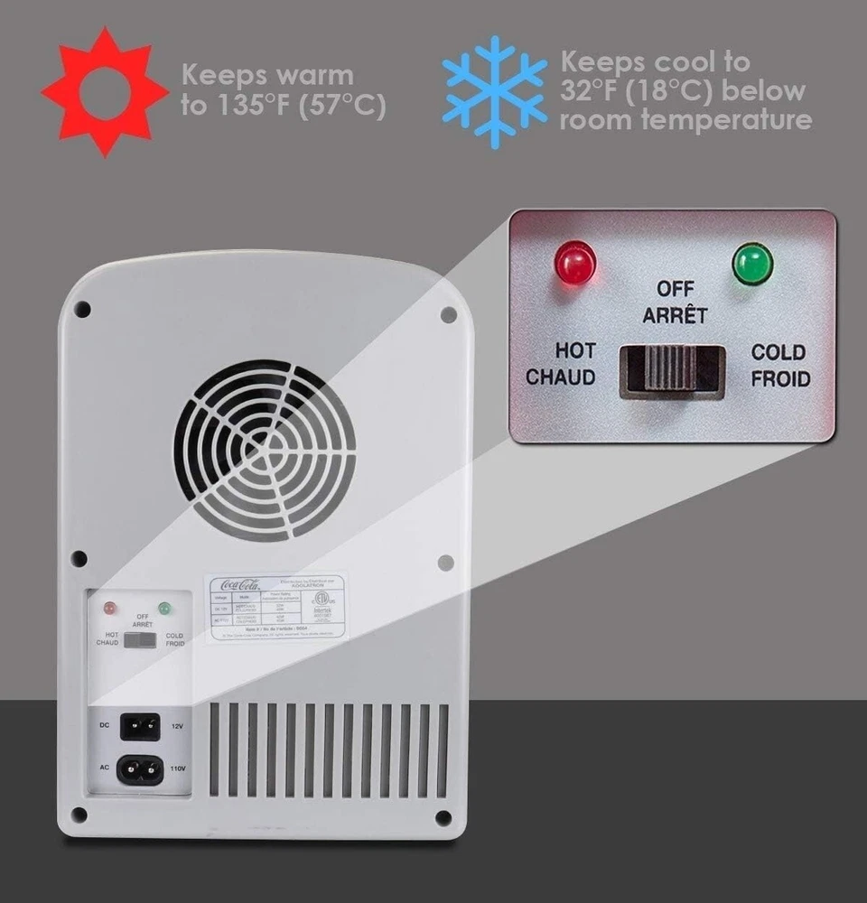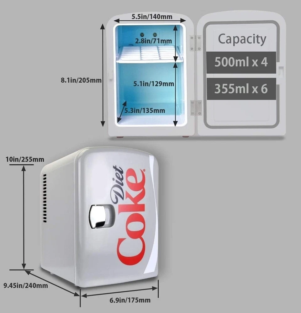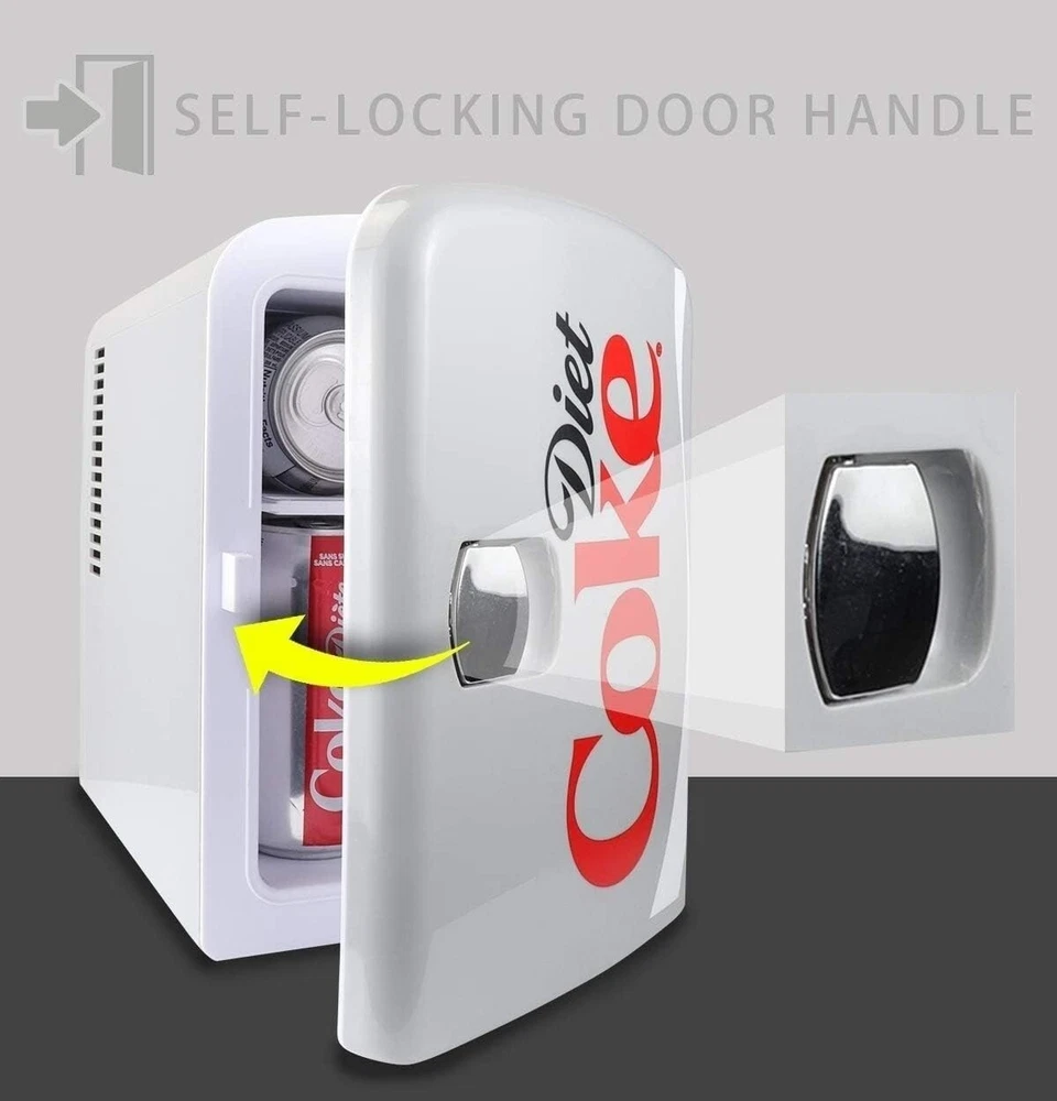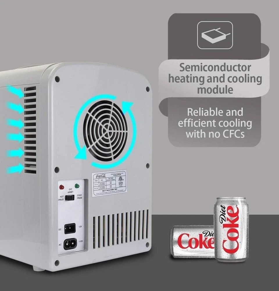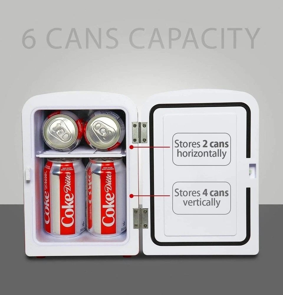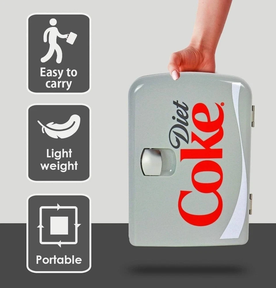 Diet Coke 6 Can Portable Mini Fridge Cools/Warms 12V DC 110V AC Travel Fridge