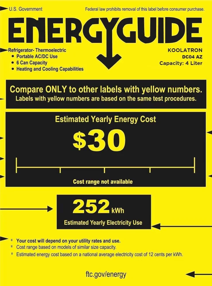 Model: DC04-B Number of Doors: 1 Item Depth: 10 in Ice Maker Location: none Item Width: 7 in Type: Portable Fridge Brand: Koolatron Finish: Gloss Door Style: Single Door Material: Plastic Number of Freezer Compartments: 0 Country/Region of Manufacture: Unknown Capacity: 6 soda cans Manufacturer Warranty: none Defrost Method: Manual Defrost Installation: Freestanding Number of Drawers: 1 Bottle Capacity: 6 cans Energy Consumption per Year: 200-300 kWh Number of Shelves: 1 Item Height: 10 in Color: Gray Features: Heats or Cools