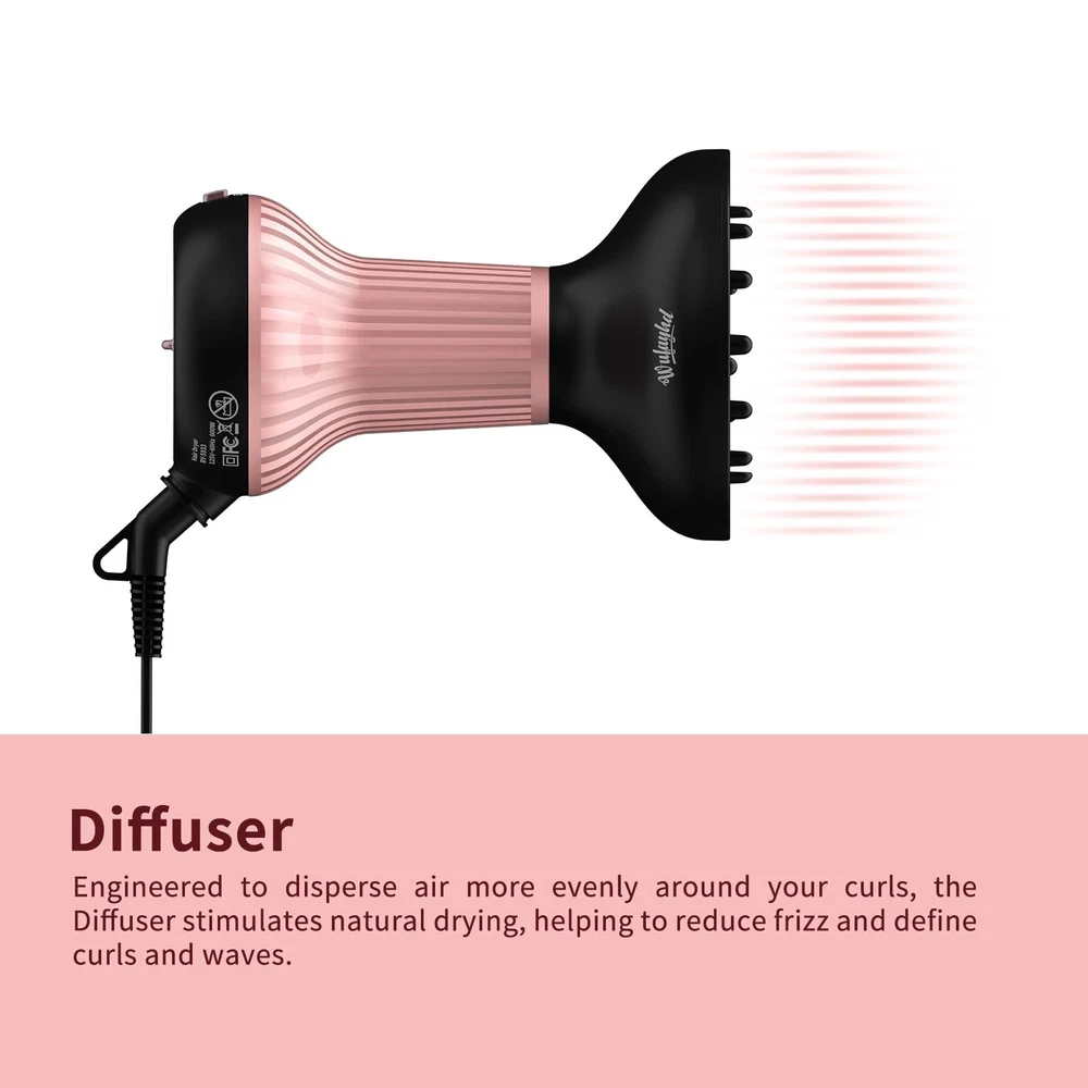 Professional Diffuser Hair Dryer is the key to achieving flawless, frizz-free curls. This innovative device not only defines your curls but also adds volume and shine while minimizing the risk of heat damage. Lightweight Elegance, On-the-Go Functionality: Experience lightweight elegance with our 2-in-1 diffuser and blow dryer, tailored for the modern traveler. Its comfortable handle ensures a swift and comfortable hair drying experience, setting a fresh benchmark for portable hair care. Innovation for Beautiful Hair: Step into the future of hair care with our cutting-edge innovation. Our product, equipped with ceramic heating elements, not only shields your hair from heat damage but also enhances hydration. Enjoy personalized styling with two airflow and temperature settings. Elevate Your Beauty Routine: Achieve stylish hair and discover the art of thoughtful gifting with this remarkable product. It's more than a dryer; it's a style essential. The sleek design adds an extra touch of elegance, and our Maintenance Coverage Team is always ready to assist. Ensured Safety: The ALCI (Appliance Leakage Circuit Interrupter) plug prioritizes safeguarding individuals against electrical shocks due to ground faults. This device promptly cuts off power to the appliance upon detecting a ground fault leakage current ranging from 4mA to 6mA. 3 Settings for All Hair Types: Choose from Low (gentle heat & 1× airflow), Medium (warm & 2× airflow), or High (hot & 2x airflow) to suit different hair textures and styling needs. Whether you're gently drying fine hair or quickly styling thick locks, this curly hair diffuser gives you flexible control for salon-quality results at home.
