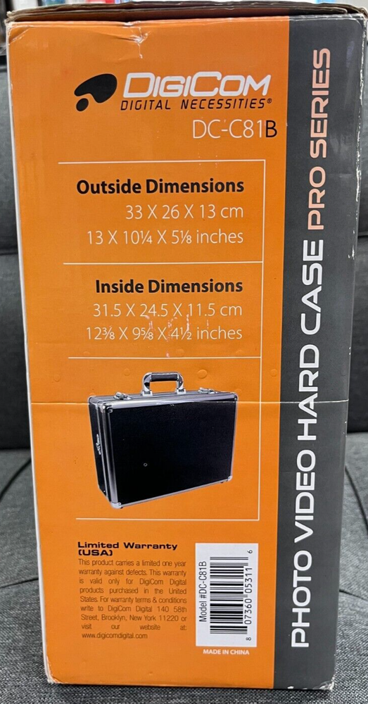 Color:BlackMaterial:Aluminumgtin13:0807360053116Features:Accessory Compartments, With Strap, Padded, Adjustable, With FoamMPN:DCC81To Fit:CameraCompatible Brand:UniversalUPC:0807360053116Compatible Series:For Nikon D, For Nikon 1, For Canon EOSModel:DC-C81Type:Hard CaseGTIN:0807360053116Brand:Digicom