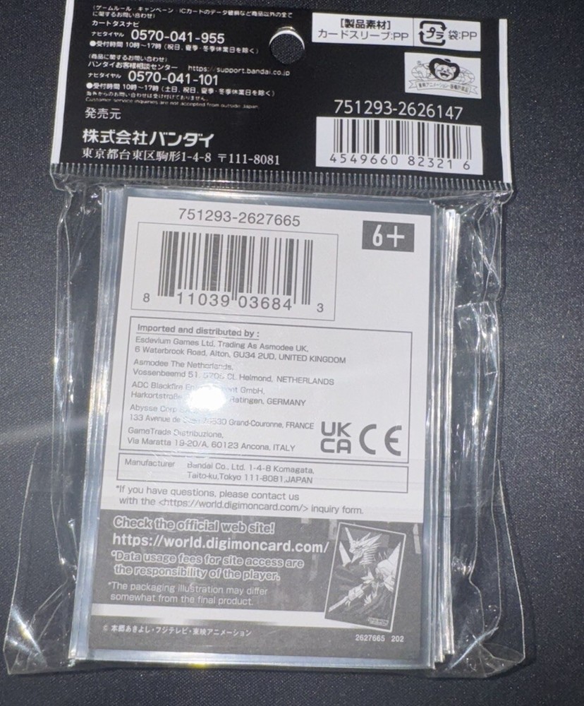 Featured Person/Artist:JessmonType:Card SleevesSigned By:Does Not ApplyAutograph Authentication Number:Does Not ApplyColor:MulticolorInscribed:Nogtin13:4549660823216Year Manufactured:2022MPN:BCL9032841Autograph Format:Does Not ApplyGame:Digimon CCGCharacter:JessmonCompatible Card Size:StandardCompatible Card Thickness:35 Pt.Convention/Event:Does Not ApplySleeve Type:Premium SleevesCountry/Region of Manufacture:JapanFinish:GlossyColour:BlackFeatures:Suitable for TournamentAutographed:NoAge Level:8+Brand:DigimonNumber of Sleeves:60EAN:4549660823216Custom Bundle:No
