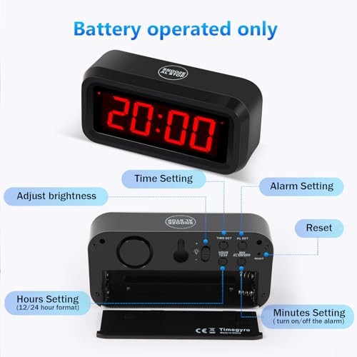 Return Policy Fast Delivery Trusted seller Digital Alarm Clock Battery Operated with LED Display for Bedrooms, Long Battery Life for 12 Months, 3 Brightness Adjustable, 12/24 Hour, Snooze, Black Case with Red Digits Product Description Alarm Clock Battery Operated - This alarm clock is powered by 4pcs AA batteries which can support the digital clock to work for more than 1 year. It is battery operated only, no usb ports, so you can put anyw that you like. Alarm Clocks for Bedrooms - This alarm clock is with 3 brightness levels, you can choose the suitable brightness for you.With the Night-Mode, it will dim automatically during 8:00pm-6:00am, so you won't feel too dazzling in the room. Digital Clock with LED Display - Unlike other digital clock, this LED digital clock is supported by batteries only, no need to plug by adapter cord, very convenient. It also has two display modes switchable :12/24hr mode. Desk Clock or Besides Clock - The clock size is 5.1x1.5x2.6 inches, portable and muted. You can use it as a desk clock or besides alarm clock, or take it out as a travel clock. Easy to Operate, with Snooze Function - The clock comes with a manual and it is easy to operate. The "Snooze" button is on top, touch it to stop alarm and 7 minutes later it goes off again until 3 times. Shipping Returns Payment Shipping Shipping is FREE to all addresses other than APO/PO boxes in the lower 48 states. All our stock ships from US-based warehouses. Shipped via USPS or UPS (depending on location and package weight) Unless stated otherwise, all orders will ship within 24-72 hours of your payment being processed. Check our feedback to see the great reviews of FAST shipping we offer. Returns Seller does not accept returns Payment We currently accept payment via eBay managed payments only. Once payment is cleared, we will dispatch your shipment within 1-3 business days. Please refer to the "Shipping" tab for more information regarding shipping speed to your destination.