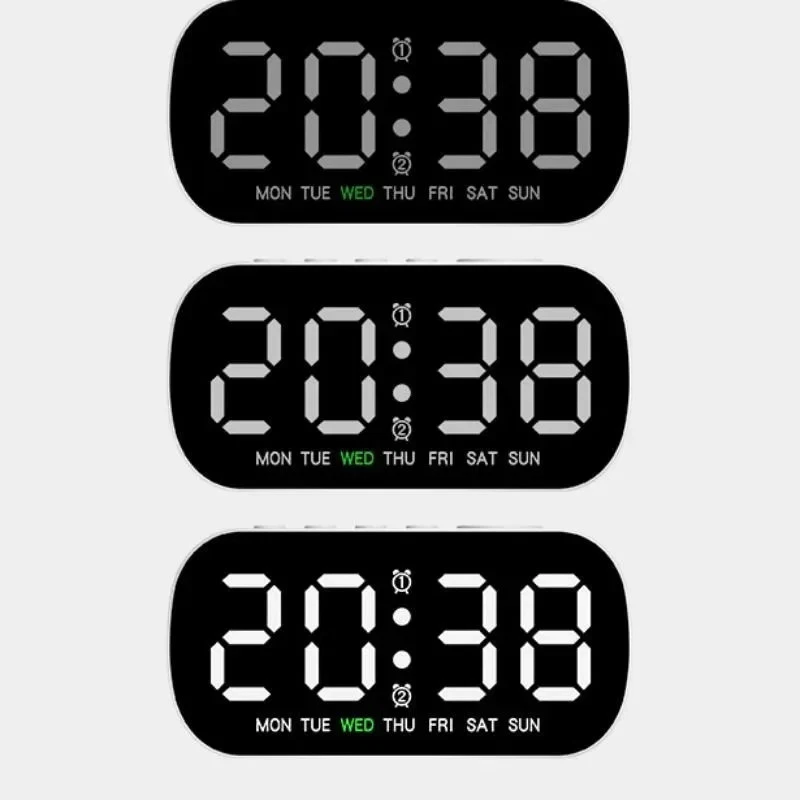 Function 1.Time/Date/Temperature /Week Display 2.Dual Alarm clock function Support to set Alarm frequency :1-5/1-6/1-7 1-5:Alarm rings from Monday to Friday 1-6:Alarm rings from Monday to Saturday 1-7:Alarm rings from Monday to Sunday 3.Brightness adjustment 5 Levels manual brightness adjustment 4.Two Display Modes Press “+” button more than 3s to switch display mode ①Time and week are displayed on the same screen ②Time/date/temperature+week circle display 5.Time memory function Available when powered by battery and plug in use at the same time 6.Night Mode If night mode is on,Brightness darkens at night (22:00-6:00) 7.12/24 hour format switch (1)Time Display (2)Press S button more than 3s 24Hr Display (3)Press UP or DOWN can switch to 12Hr 8.℃/℉ Switching Press “-” button more than 3s to switch ℃/℉ Product Show Material: plastic Power type: external power supply(USB powered) Color: black white light, black green light, black blue light,black pink light,black orange light USB Cable Length:100cm/39.37inch Package size: 14*8.5*4cm/5.5*3.3*1.6inch Product size: 13.5*6.5*3.5cm/5.1*2.6*1.4inch Package: 1xDigital Alarm Clock 1x100cm USB Cable 1xInstruction NOTE 1:Take the protective flim on Clock Screen,it will be brighter. NOTE 2:It will go off after 10 seconds when only powered by 3xAAA Battery(Not Included).Press any key to wake up the alarm clock . If you want screen always on, please plug in use.(USB Included but Plug Not Included)
