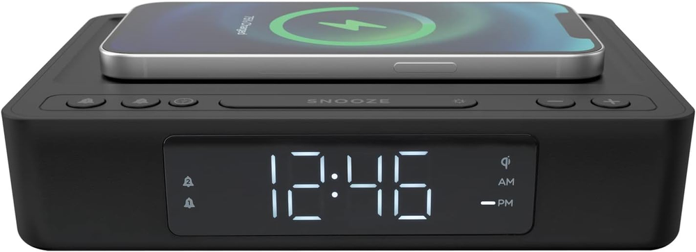 Digital Alarm Clock with Wireless Qi Certified Charging Pad, Adjustable Brightne