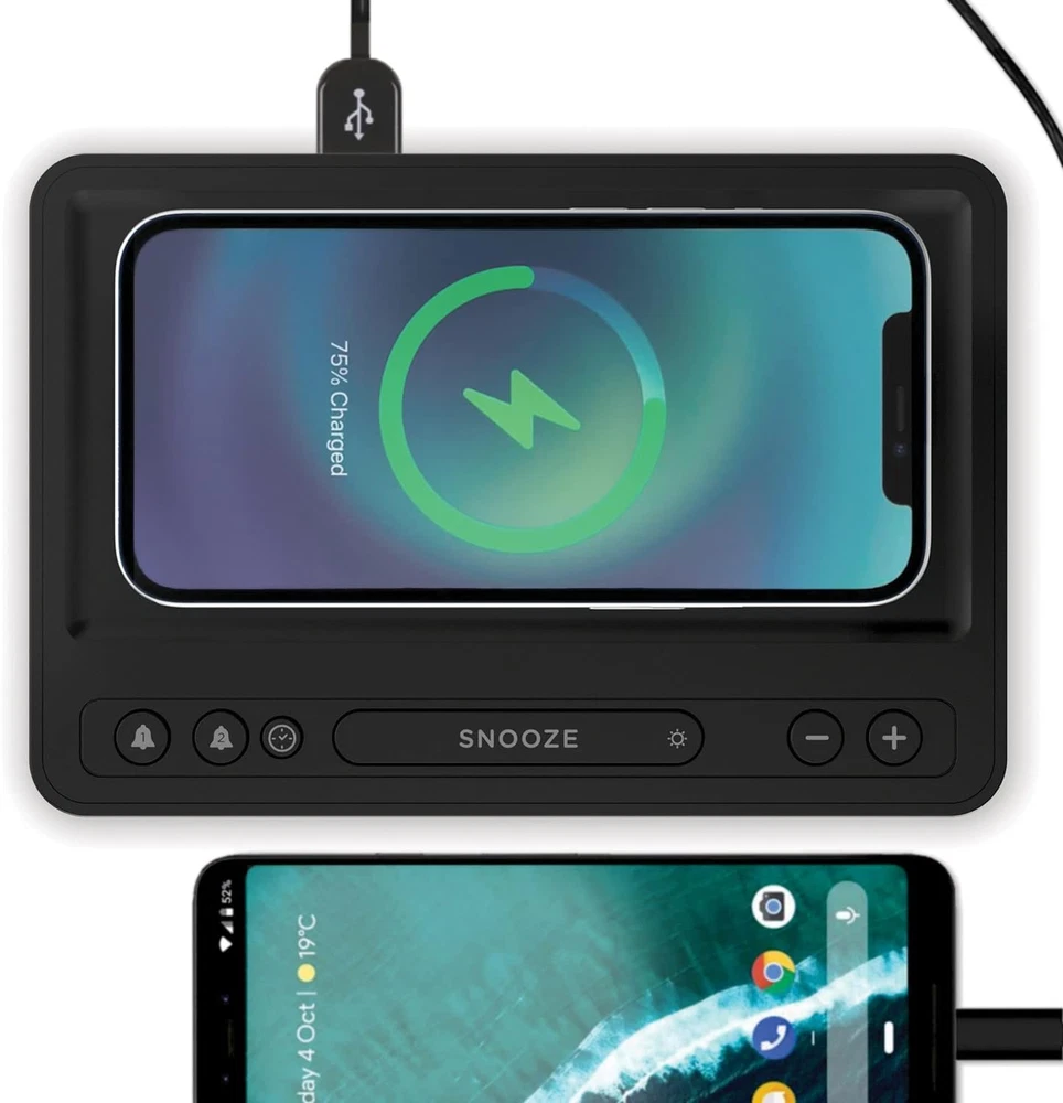 Store New Arrivals Add to Favorite View Feedback Digital Alarm Clock with Wireless Qi Certified Charging Pad, Adjustable Brightness, Dual Alarm, Snooze and Battery Backup, for Bedroom, Home and Office (Black) 1 Pallet 75 Pieces (1) Description Item model number LMD80 Style Contemporary Number of Items 1 Power Source Corded Electric Dial Color Black Warranty Type Limited Theme Modern Brand Lumoday Are Batteries Included No Room Type Bedroom Product Dimensions 1.58"W x 7.05"H Material Acrylonitrile Butadiene Styrene (ABS) Watch Movement Automatic Frame Material Plastic Age Range (Description) Adult,Kid,Teen Manufacturer Lumoday Item Package Quantity 1 Indoor/Outdoor Usage Indoor Item Weight 15.5 ounces Special Feature Dual Alarm, Snooze, Charging Port, Charging Station Display Type Digital and LED Clock Form Multi Display Mounting Type Freestanding Color Black Operation Mode Manual Shape Rectangular Alarm Clock Yes Size One Size LED DISPLAY: The Bold 1-in. white LED makes it easy to see the time at a glance. You can dim the display to keep your room darker at night or turn it up for easy viewing during the day WIRELESS CHARGING: Features a wireless Qi charging pad and an additional USB charging plug. Simply set your wireless charging compatible phone down on the top to recharge (compatible with all iPhone models from iPhone X and newer and with most Android phones) DUAL ALARMS: Multiple alarms and a large snooze button allow use as a bedside alarm clock, charging pad makes it ideal addition to kitchen or living room BATTERY BACKUP: Have peace of mind in case power ever goes out. All Lumoday clocks offer an option to use 2AA batteries to save the time and alarm settings in case the power goes out Lumoday products are designed in the laid back valley town of Ojai, California. Inspired by mid-century design, our line matches classic and modern features together to offer time-at-glance convenience and device charging for your bedside, home and office. Product Description Lumoday Line Our products are designed in the laid back valley town of Ojai, California where we enjoy the backdrop of the beautiful Topatopa Mountains right out of our studio. Inspired by mid-century design, our line matches classic and modern features together to offer time-at-glance convenience and device charging for your bedside, home and office. ABOUT US We offer the best prices around on high quality products. Our E-store includes media such as books, movies, music and games while offering electronics, toys, sporting apparel, clothing, tools, general home, garden items and more. SHIPPING We are always working hard to ensure your package arrives as soon as possible. Please understand that some factors like weather, high postal traffic, and the performance of shipping companies are outside of our control. We offer free shipping to the lower 48 states and ship within 2 business days of payment, usually sooner. We do not accept P.O. Boxes. Please provide a physical address. RETURNS We offer a 30-Day Return Policy on items which you are not completely satisfied with. You have the option for a full-refund or an exchange of the item. No returns are available on items shipped outside of the USA. PAYMENT We accept PayPal. CONTACT US This page content is yet to come Please ad us to your favorite seller and visit again later Thank You