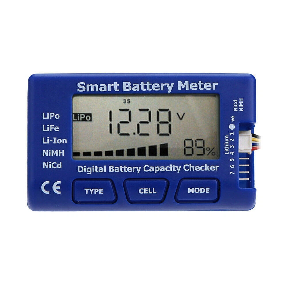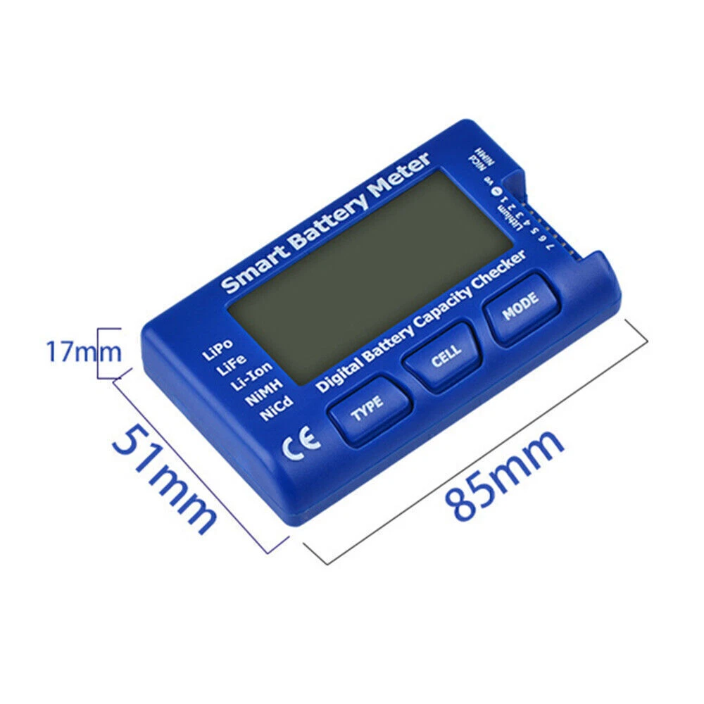 Product Description If you have any questions, please contact customer service first, do not open disputes easily, thank you! Features: Made from high quality plastic material, which is not only durable but also stable. Suitable for different battery type, including Lipo & LiFe & Li-Lon & NlMH & NiCd. Press the TYPE button to select LIPO (Lithium Polymer Battery), LIFE (Lithium Iron Battery), and LI-ION (Lithium Ion Battery). Press the CELL button to display the voltage and remaining battery capacity of each battery in turn. Press the MODE button to display the battery voltage, the monolithic voltage, the maximum voltage of the single chip, the lowest voltage of the single chip, and the highest and lowest voltage difference of the single chip. Being able to display the total number and total voltage of 1-7S Ni-MH and Ni-Cd batteries. Can be used as a steering gear tester Specifications: Product name: Digital Battery Capacity Checker Controller Material: Plastic Size: 8.5×5.1×1.7cm Color: Blue Battery type: Lipo & LiFe & Li-Lon & NlMH & NiCd Display voltage: 1-24V Package include: 1 x Digital Battery Capacity Checker Controller About Us We accept all payments authorized by eBay. powered by