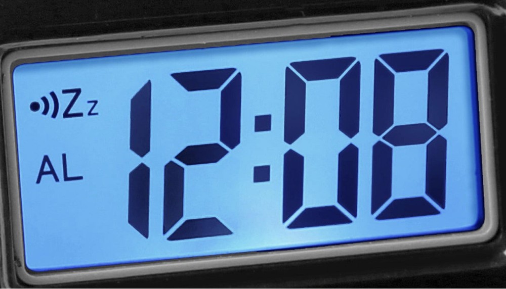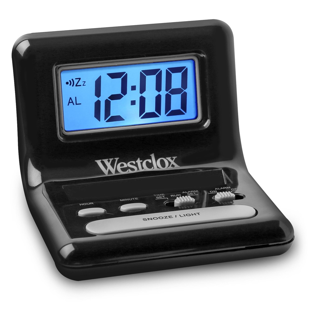About this item Black, LCD Alarm Clock Large LCD Display Display features an On-Demand Blue Backlight. Backlight stays lit while the button is pressed. Alarm with 4 Minute Snooze 2x AAA Batteries Required (NOT Included)