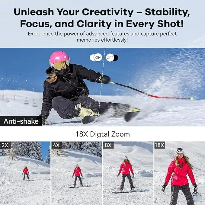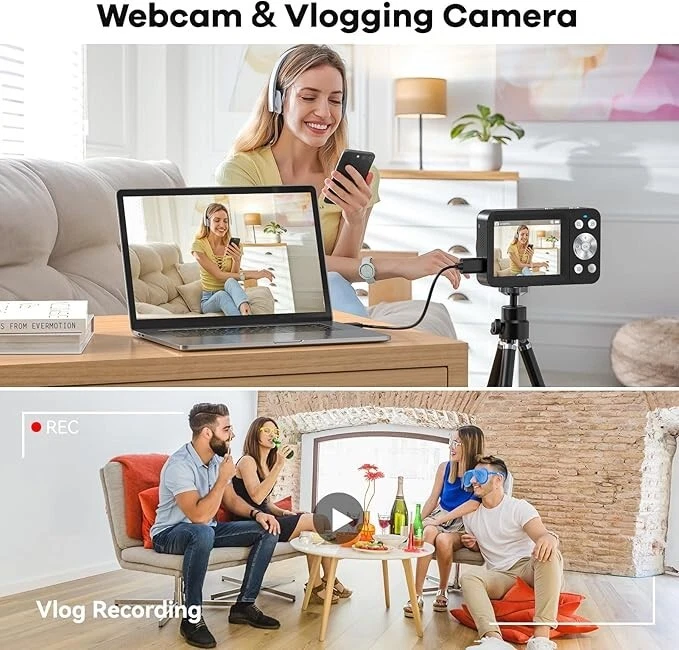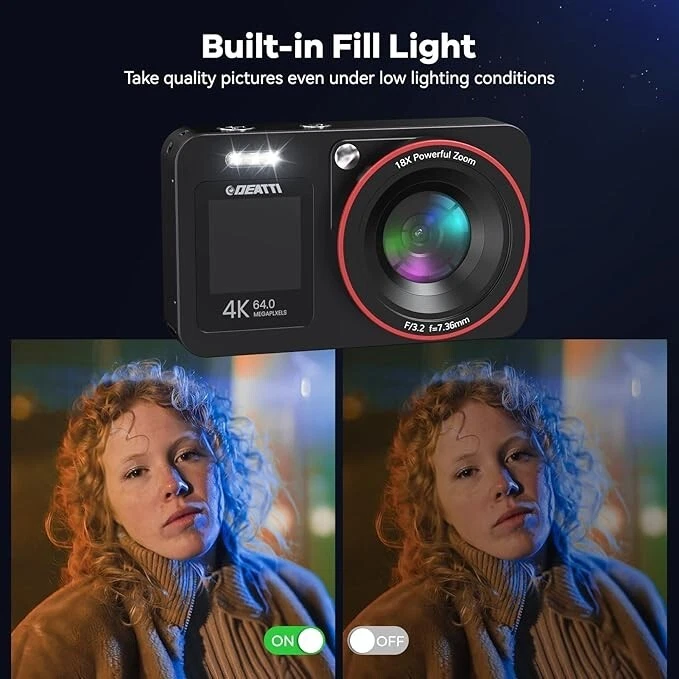 -Brand New - Never Used - Questions: Feel free to ask any Questions - BOX: Never Opened - DESCRIPTION: 【Dual Screens & Anti-Shake Design】Featuring a 1.4'' front HD display for perfect selfies(Press "OK" button 3S to transfer to selfies mode.) and a 2.8'' rear display for clear image, this vlogging camera meets all your shooting needs.With a built-in anti-shake function, you can effortlessly capture smooth and stable photos and videos every time. 【4K Ultra HD & 64MP Digital Camera】The DEATTI video camera delivers 4K video and 64MP photos, ensuring detailed and crystal-clear images. With 18X digital zoom, full-light function, and autofocus, it's a perfect photography cameras for beginners. 【Lightweight & Compact Design Camera】This travel-friendly camera fits effortlessly into your pocket or bag, ready for any moment of inspiration. Equipped with two batteries, you won't miss capturing special moments. Perfect for everything from mountain hikes to bustling markets, it's your ideal travel companion. 【Webcam for Live Streaming】This versatile camera doubles as a webcam for live streaming, video calls, or online tutorials on TikTok, YouTube, and Facebook. Easily transfer photos/videos to your computer or smartphone to share moments with loved ones. Perfect for vlogging, it helps you create engaging content and lasting memories. 【More Features of DEATTI Digital camera】Simply press and hold “OK” to switch to self-timer mode. Enjoy features like auto shutdown, image rotation, automatic picture taking, continuous shooting, zoom in/out, and various special effects. Explore and discover a range of functions designed to enhance your photography experience! - OFFERS: Reasonable offers are considered, LOWBALLERS, Best price and Lowest askers will be ignored - all sales final/no refunds/ no exchanges/ no returns - Disclaimer: I do not own the brand's trademarks, logos, pictures, or products posted. I do not intend to infringe on copyright. I find such content available on the internet. Contents are considered fair use. - Digital Camera,FHD 4K 64MP Camera with Dual Screens 64GB SD Card 2 Batteries,Digital Point and Shoot Camera,18X Zoom,Anti Shake Portable Rechargeable Selfie Camera for Teens Boys Girls Kids,Black